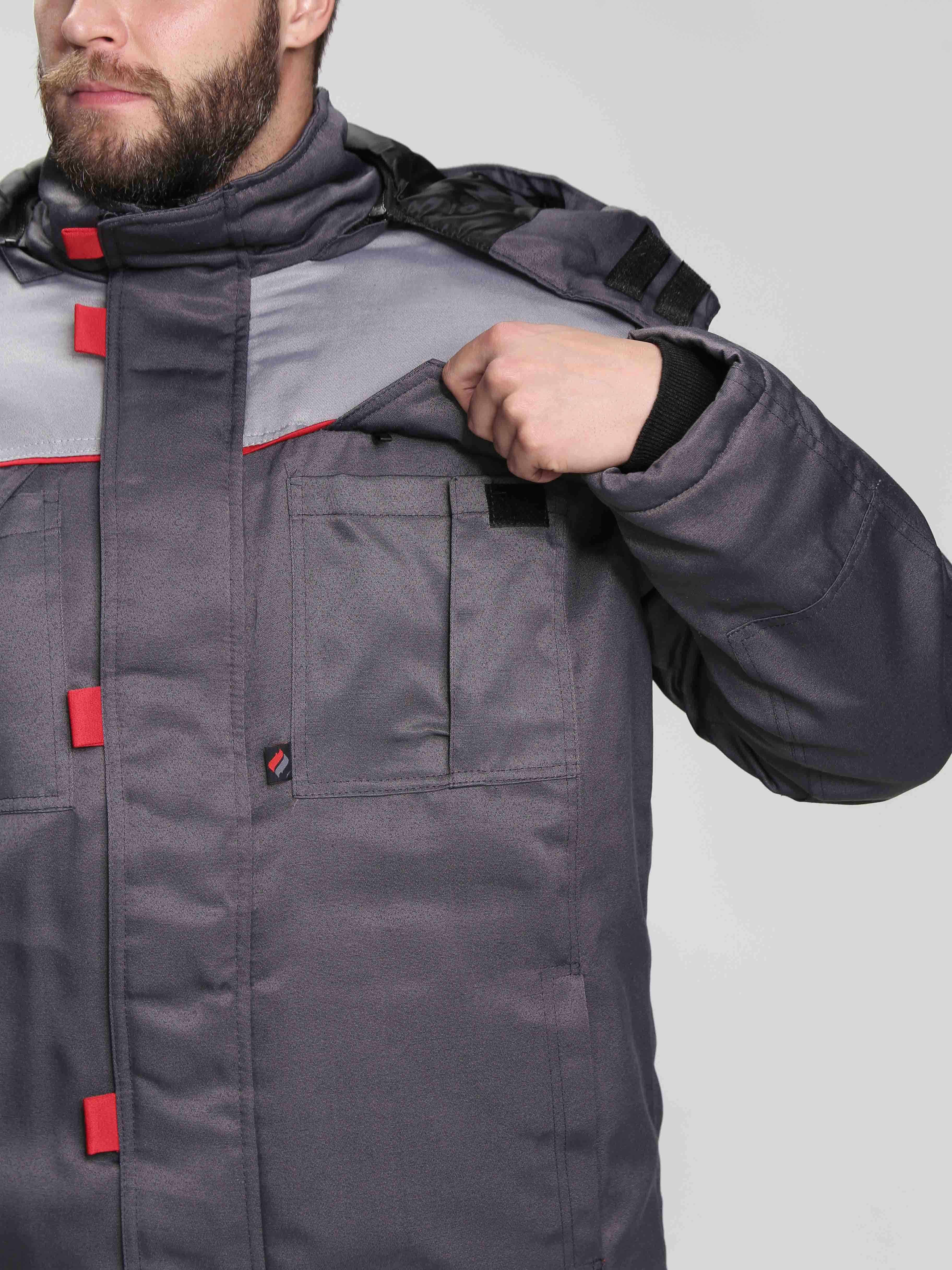 с ветрозащитную планку застёгивающеюся на пять лент - «контакт» и с патами из контрастной ткани