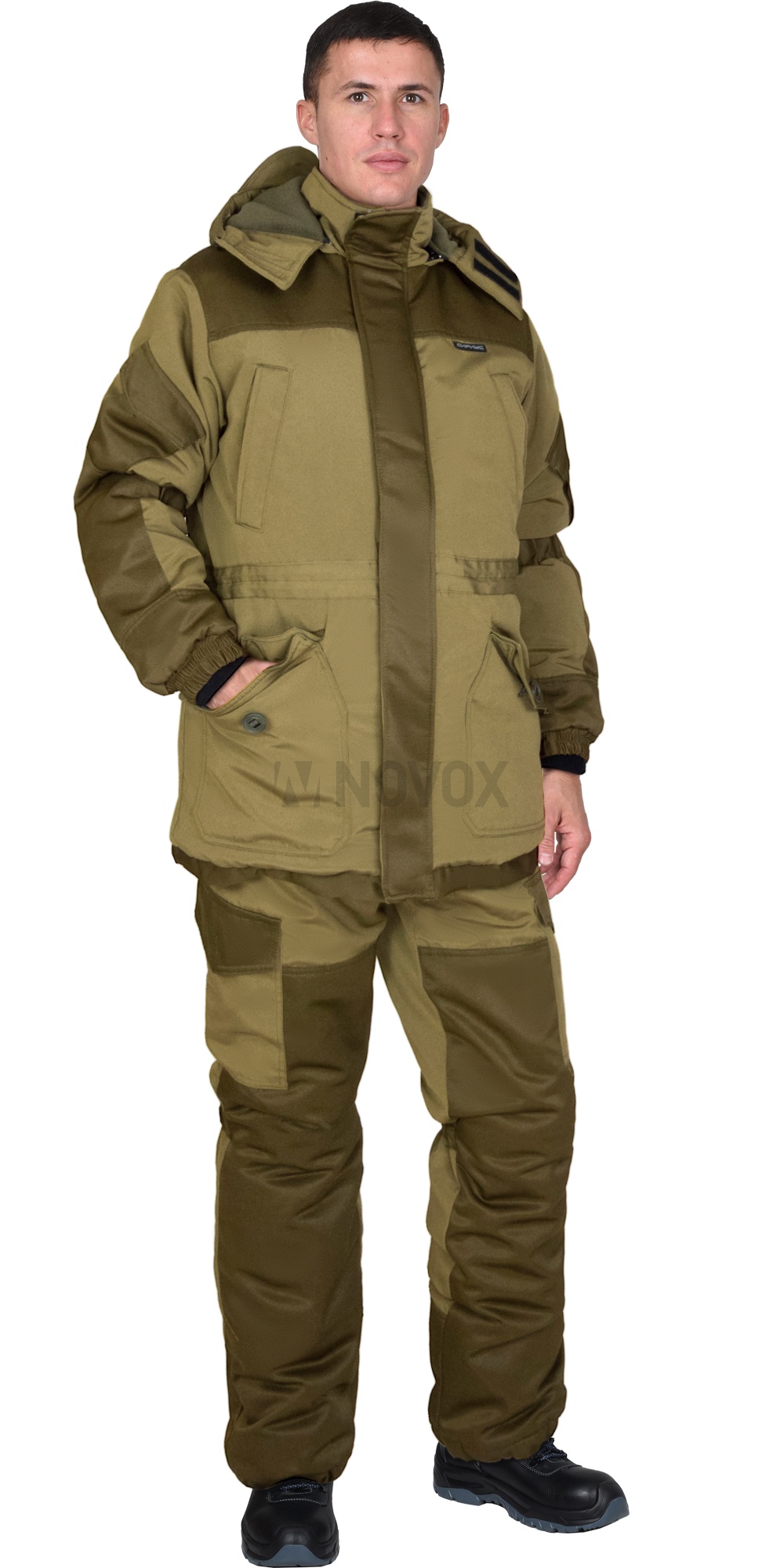 Материал утеплителя: Синтепон 150 г/м², состав 100% ПЭ, куртка – 3 слоя, брюки – 2 слоя.
