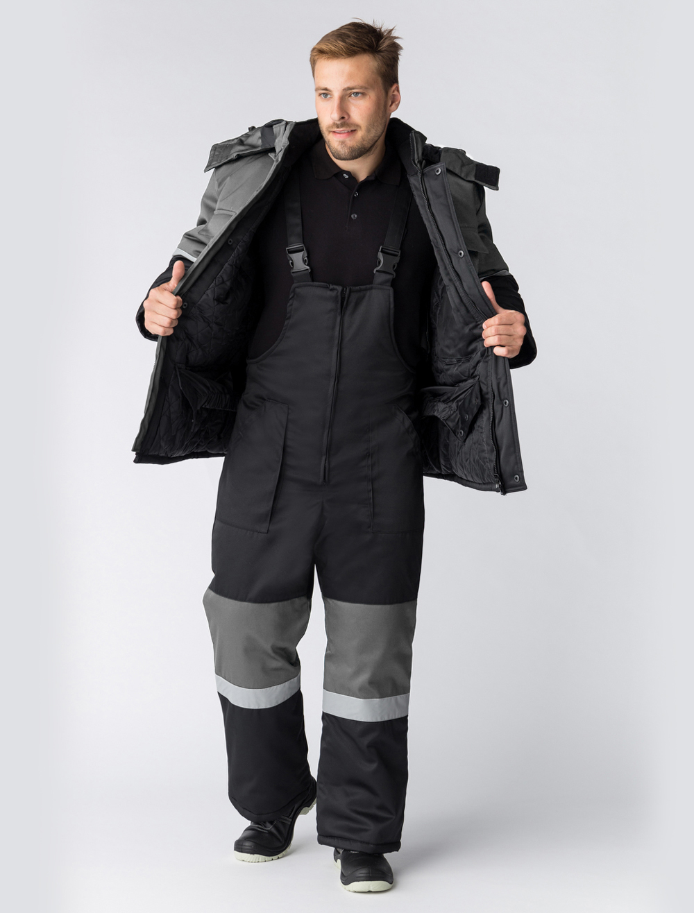 Костюм зимний "Нордхард-2" СОП (тк.Смесовая,250) п/к, черный/серый
