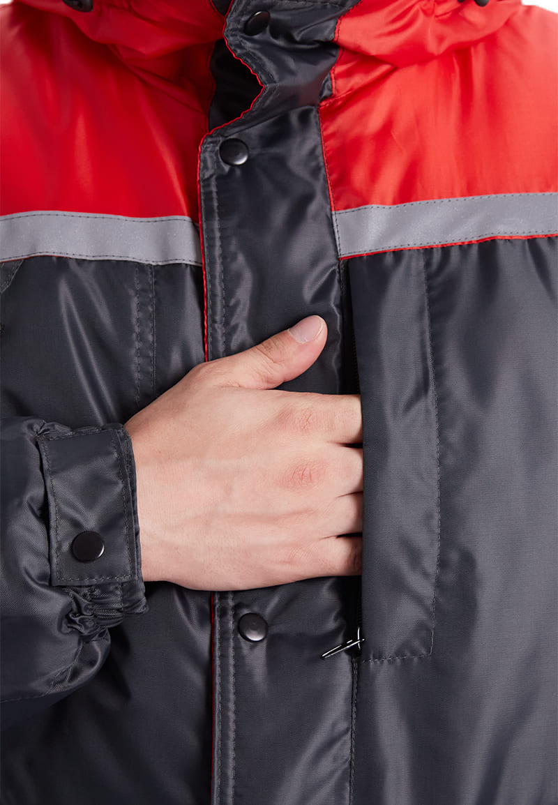 - Светоотражающие полосы шириной 25мм — на кокетках полочек и рукавах, 50мм — на кокетке спинки;