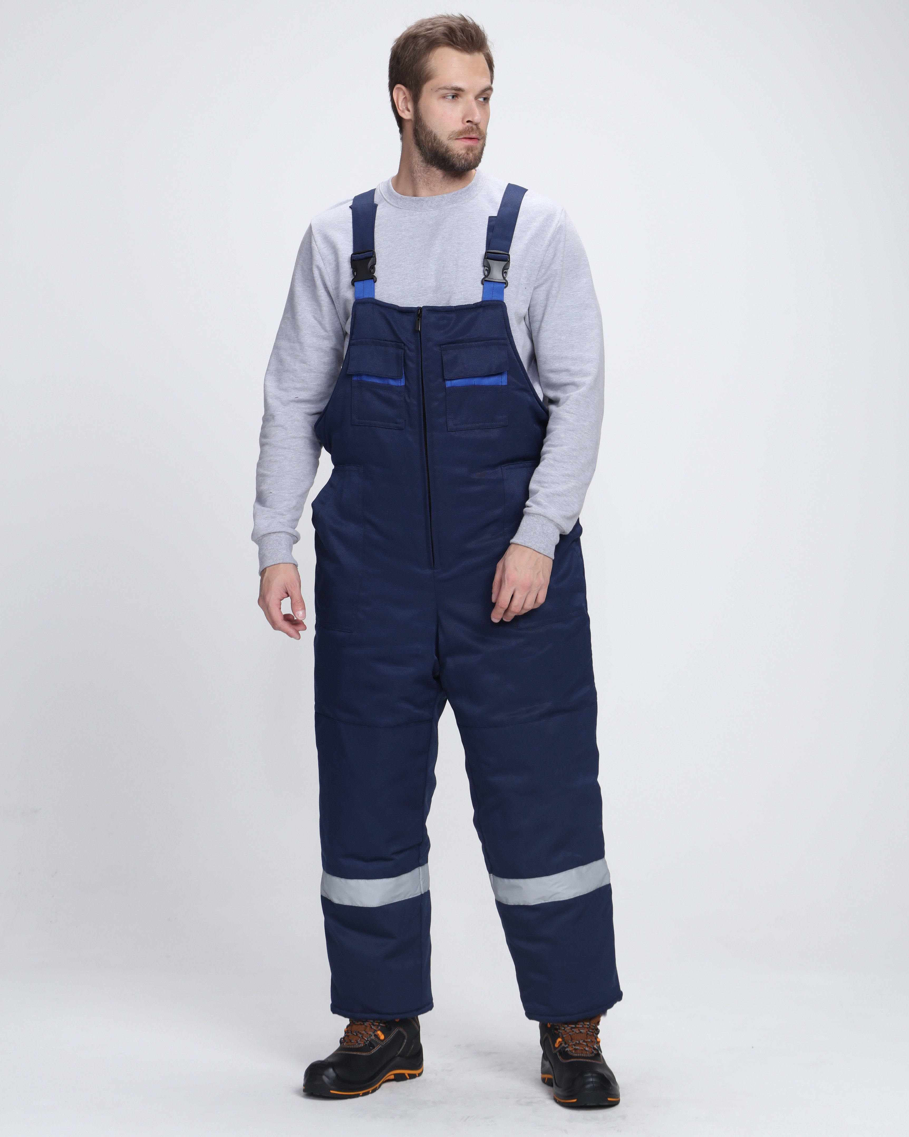 - ниже талии, на передние половинки полукомбинезона настрочены накладные карманы
