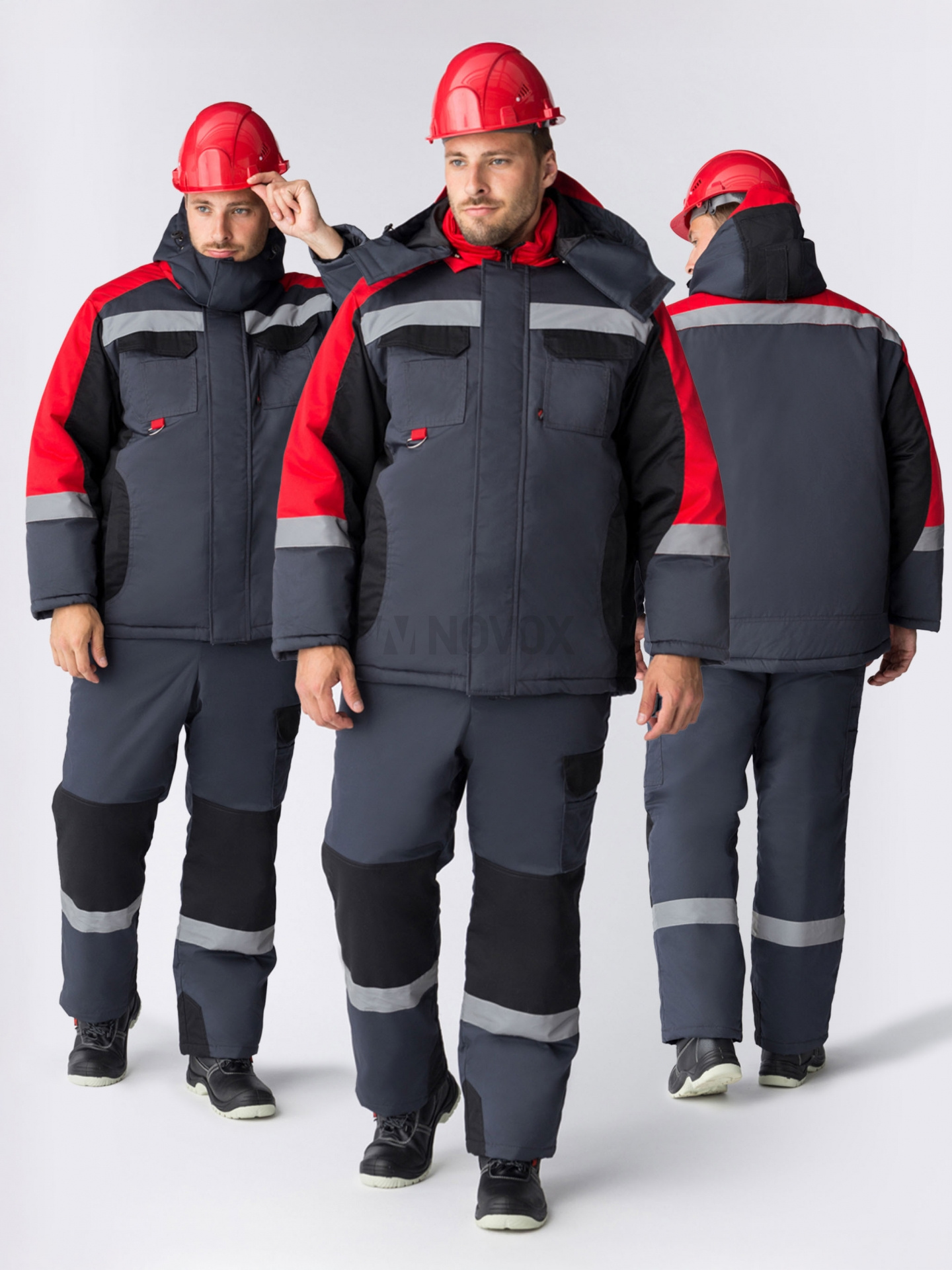 Костюм зимний "Вектрон-2" СОП (тк.Смесовая,240) п/к, черный/красный/серый