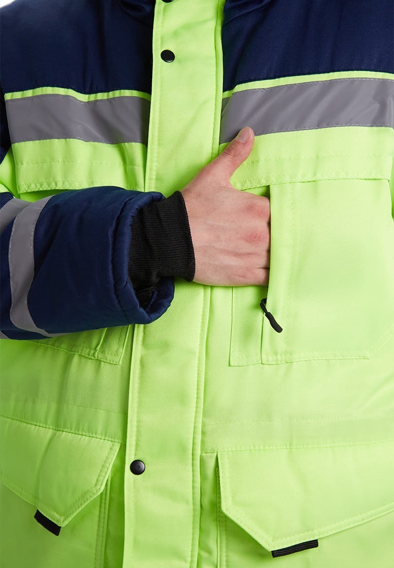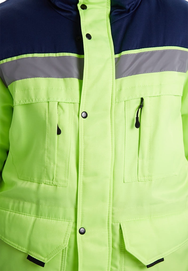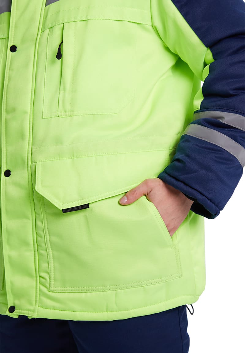 - Со световозвращающими полосами по полочке, спинке и рукавам;