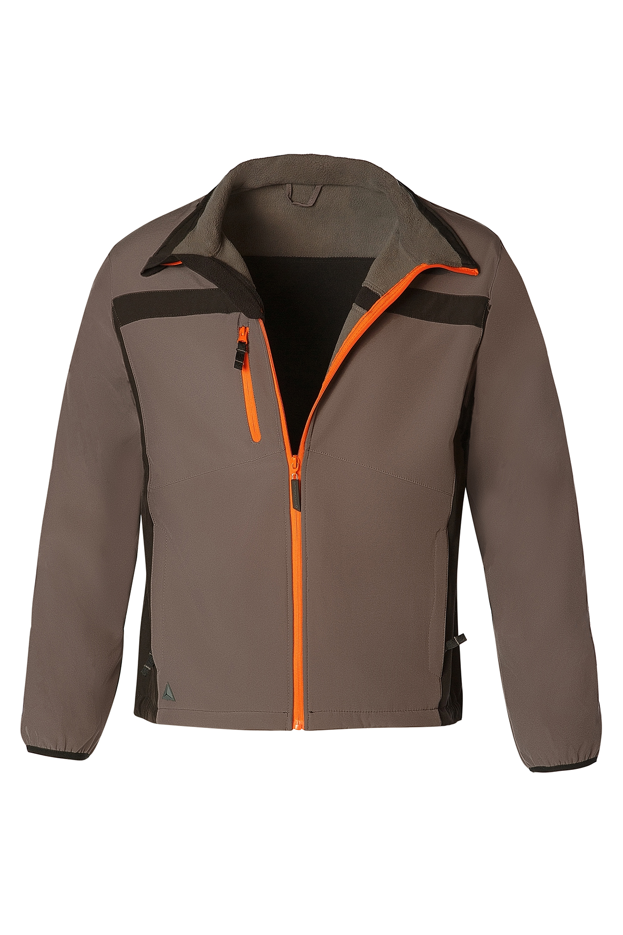 Изготовлена из материала Softshell. Материал разработан для повседневного использования, защищает от непогоды, быстро высыхает при попадании под небольшой дождь, хорошая ветрозащита. Softshell состоит из двух текстильных слоёв, представляет плотное соединение между собой материалов: верхний слой из эластичной ткани, нижний слой из флиса.