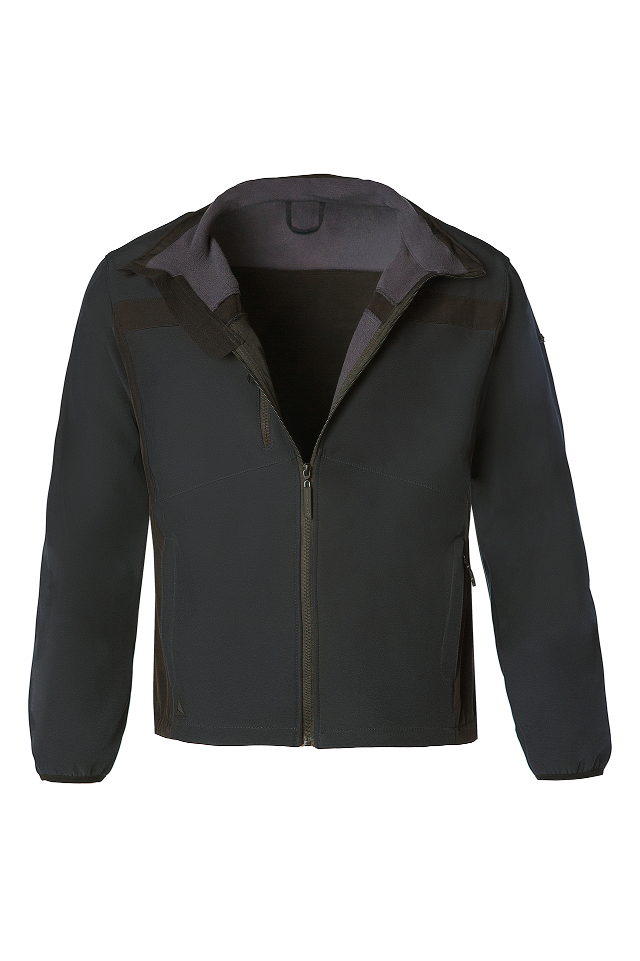 Изготовлена из материала Softshell. Материал разработан для повседневного использования, защищает от непогоды, быстро высыхает при попадании под небольшой дождь, хорошая ветрозащита. Softshell состоит из двух текстильных слоёв, представляет плотное соединение между собой материалов: верхний слой из эластичной ткани, нижний слой из флиса.