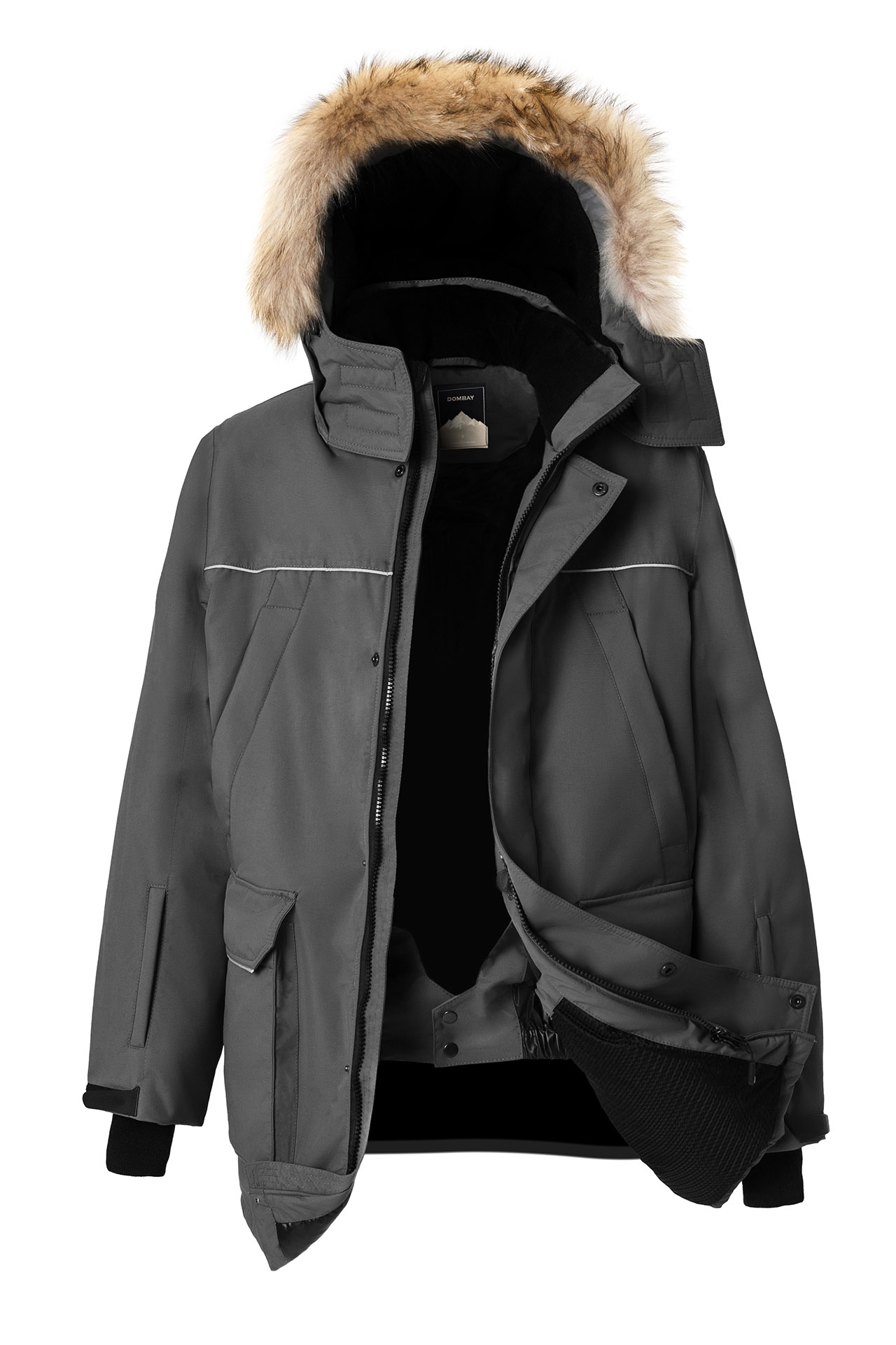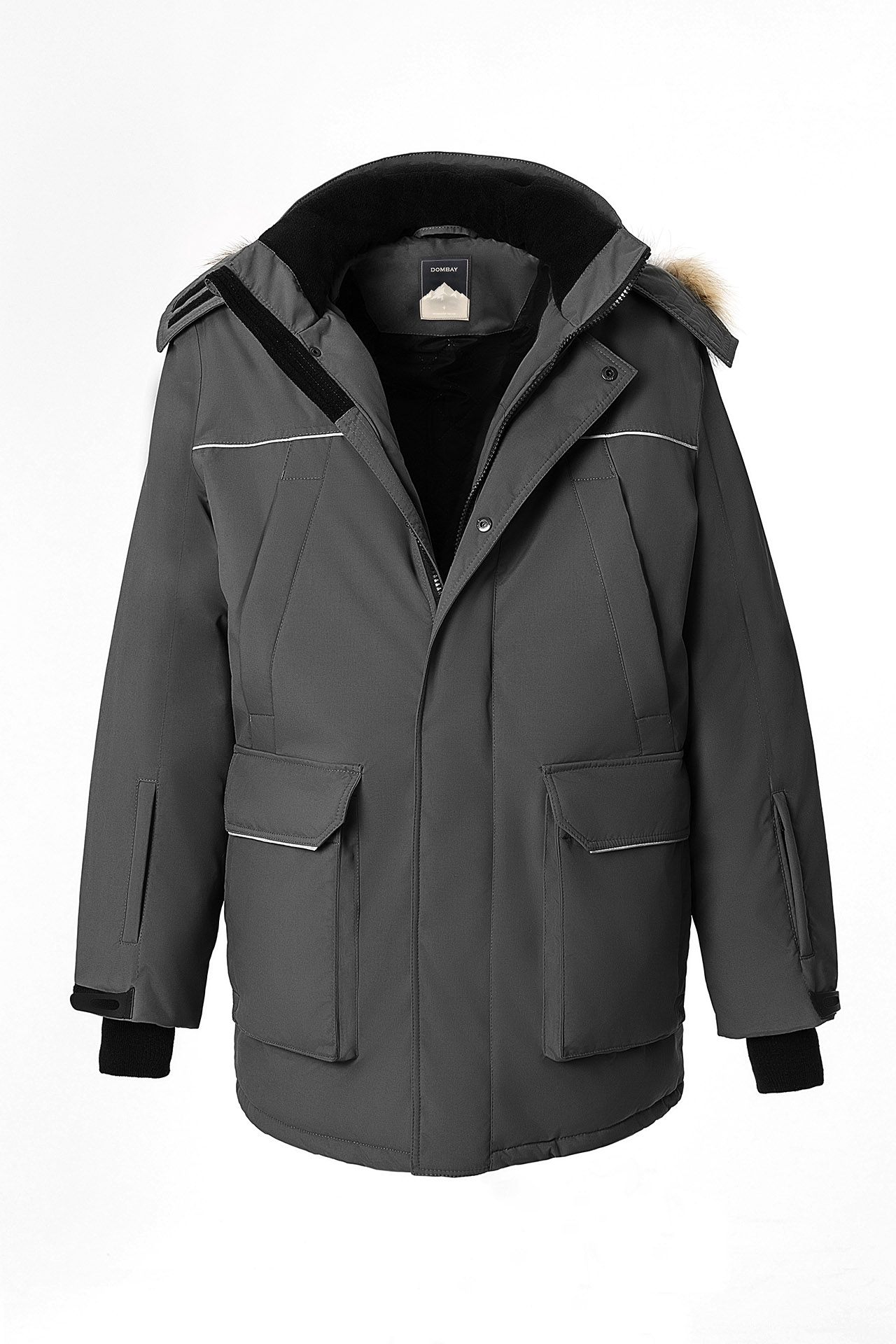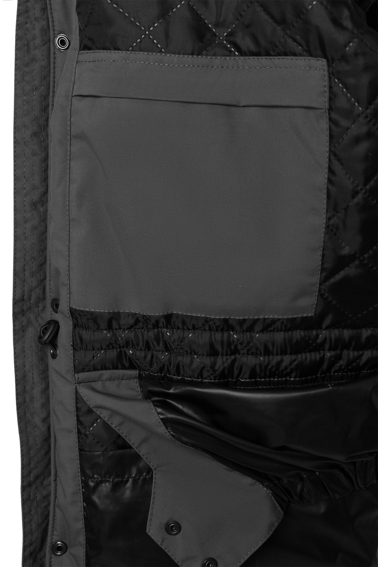 Множество функциональных карманов: передние верхние боковые карманы с утеплением из флиса застегиваются на молнию; передние нижние боковые карманы-портфели с клапаном, утеплены флисом и имеют вертикальный и горизонтальный вход; карманы на рукавах застегиваются на молнию; объемный карман под центральной планкой с хлястиком для бэйджа; два внутренних верхних кармана застегиваются на молнию; два внутренних нижних кармана.