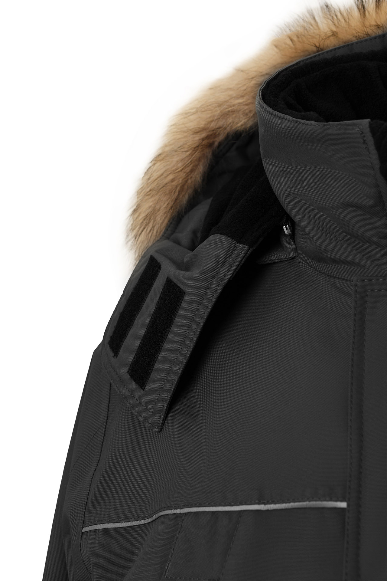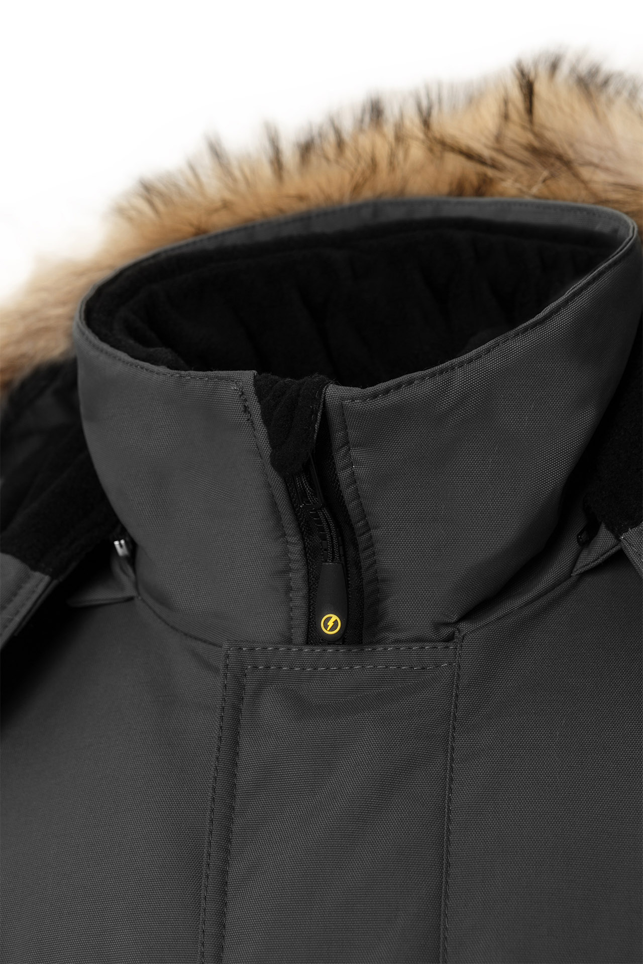 Воротник-стойка куртки изнутри утеплен флисом.