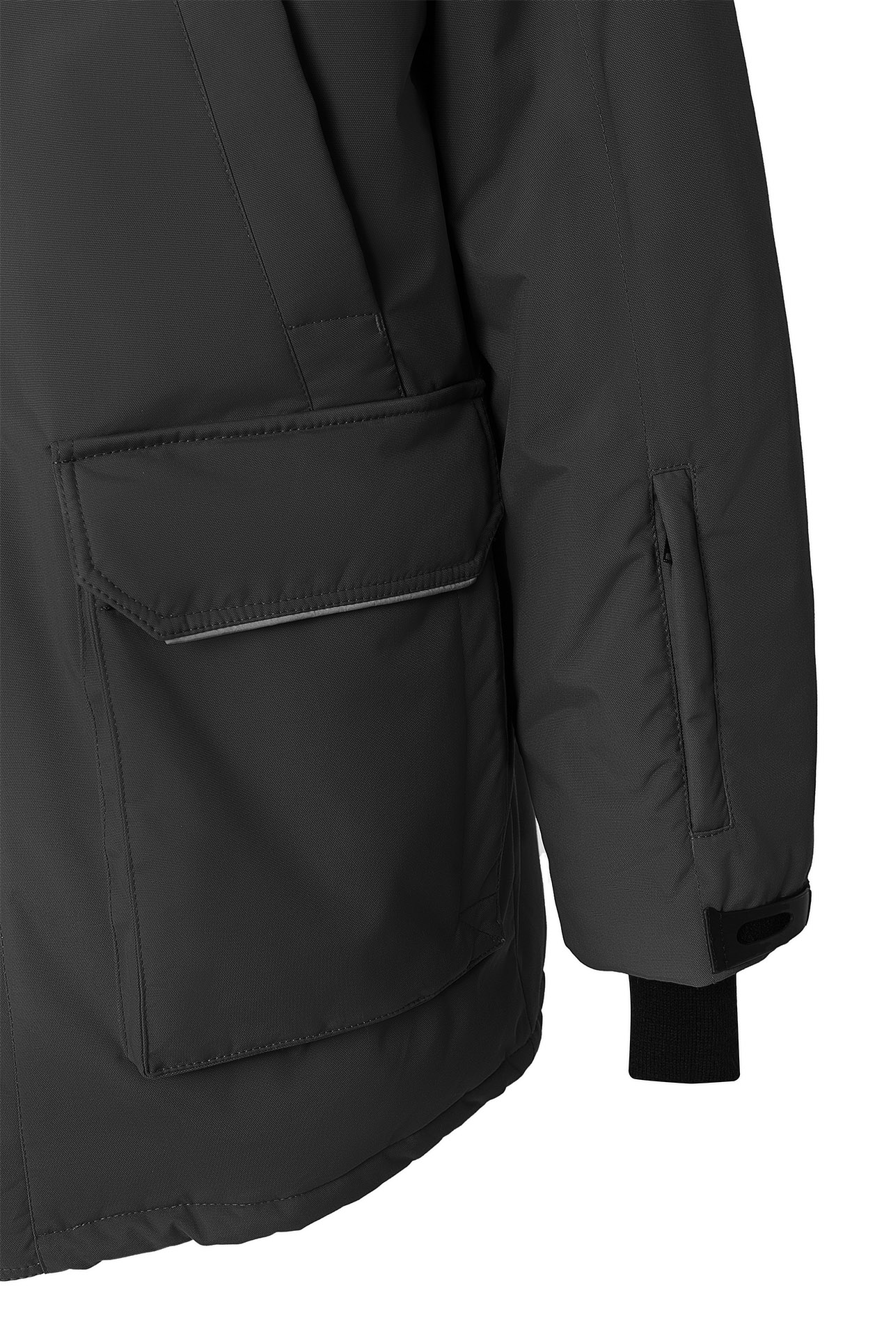 Низ рукава регулируется патами на контактной ленте для сохранения тепла и ветрозащиты.
