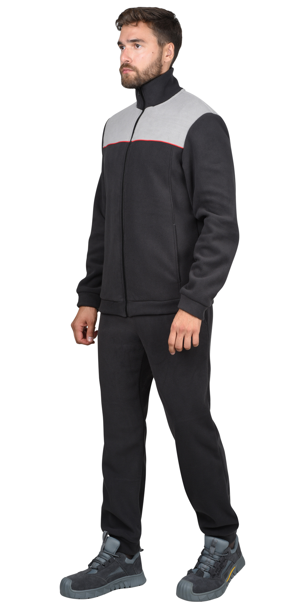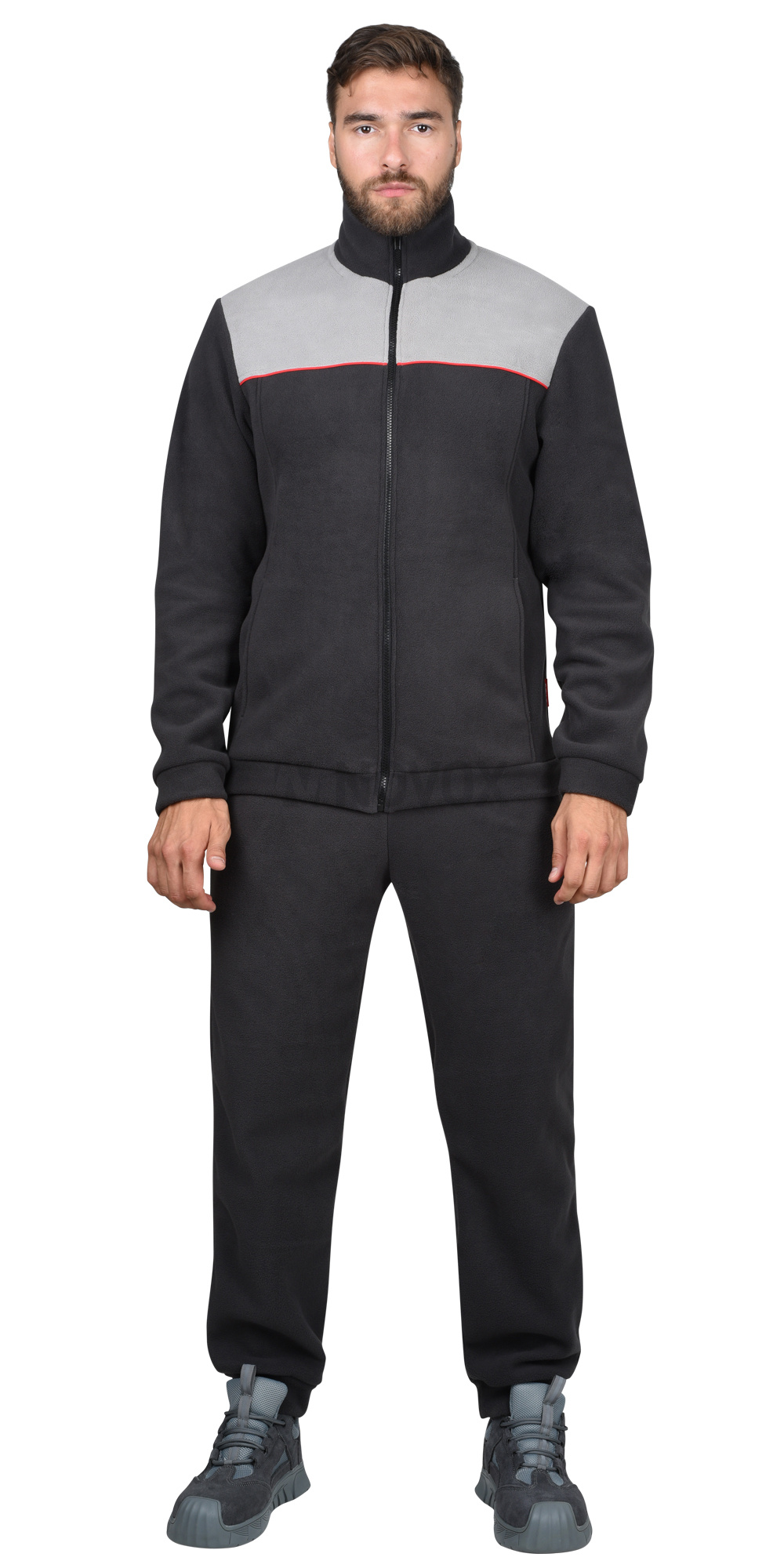 Куртка флисовая т.серая со св. серым,красный кант (Фаворит)
