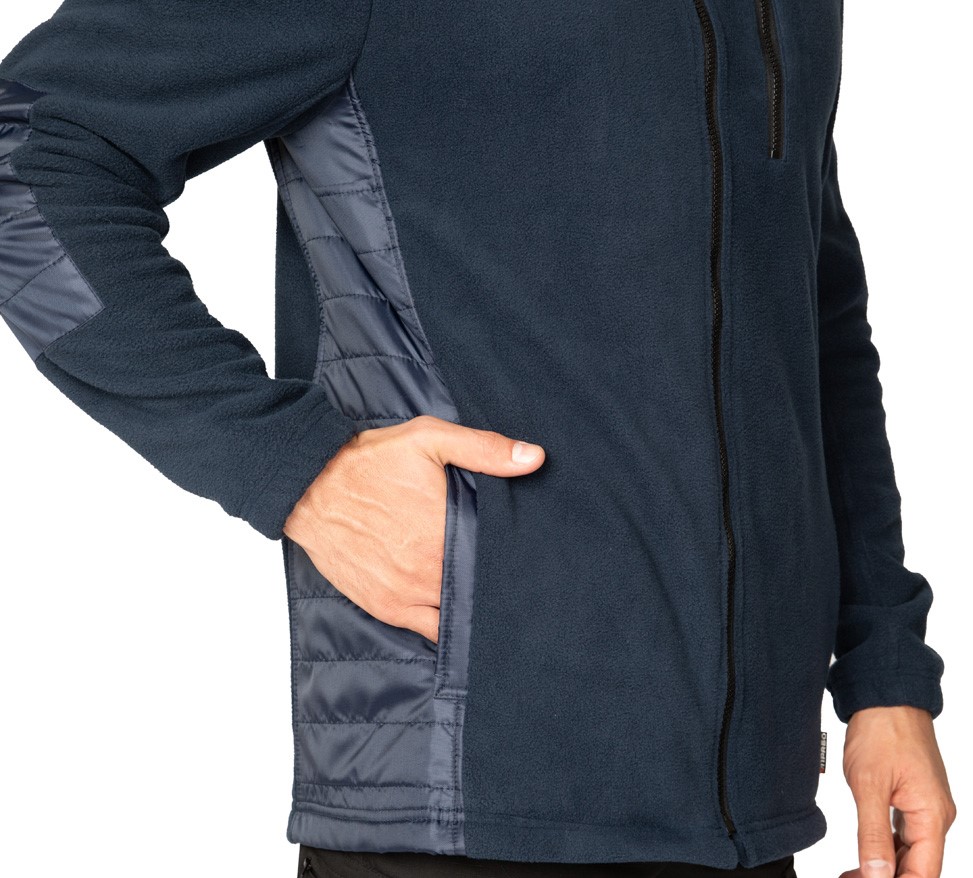 Универсальная современная модель флисовой куртки с вставками из влаго- и ветрозащитной ткани одинаково подойдет для любителей активного отдыха, туризма, охоты или для использования в городской среде. На куртке в местах, подверженных истиранию, детали выполнены из ткани "Оксфорд-210 ПУ 1000", которая обладает водоупорными свойствами и выдерживает 1000 мм водяного столба, её легко можно почистить, не применяя машинную стирку. Бегунок от молнии закрывается мягкой планкой из основной ткани, которая защищает подбородок от защемления и не доставляет дискомфорт при носке. Универсальная толстовка из флиса подойдёт в качестве верхней одежды в летний период или в качестве второго утепляющего слоя в межсезонье или зимнее время года.