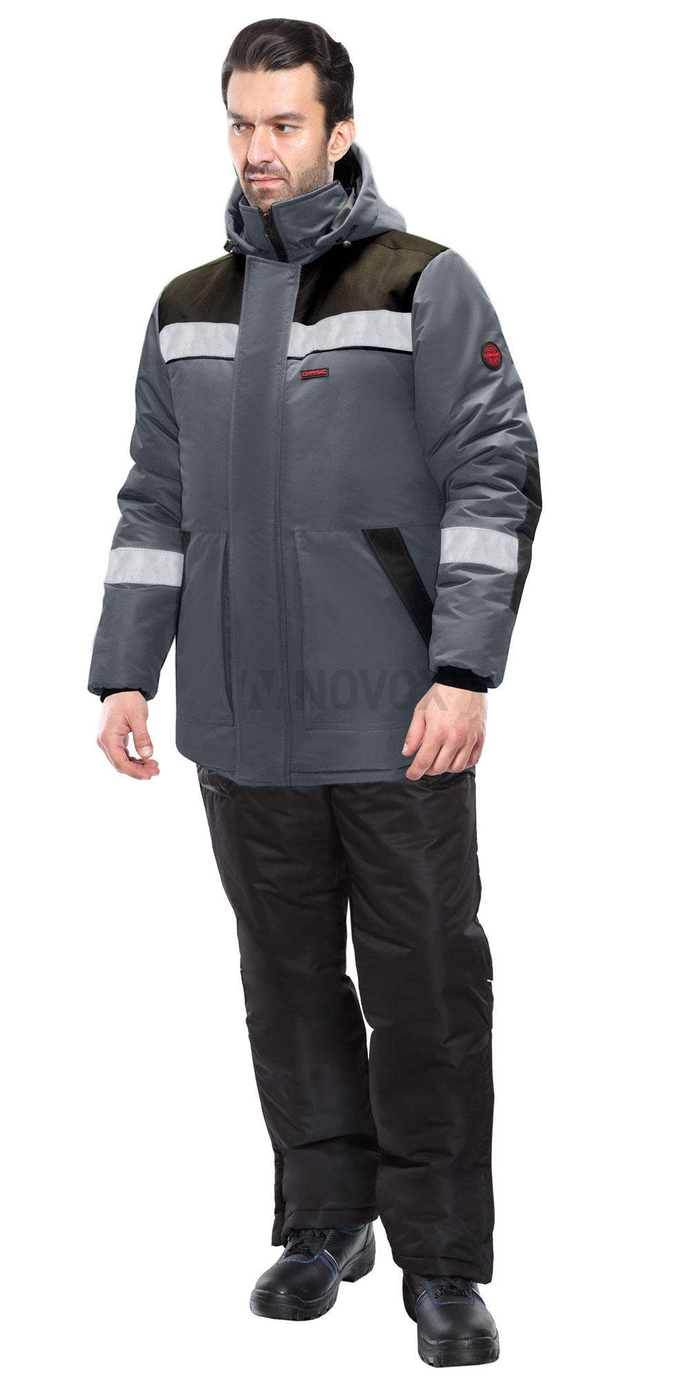 Для обозначения видимости в темное время суток в куртке предусмотрены светоотражающие полосы.