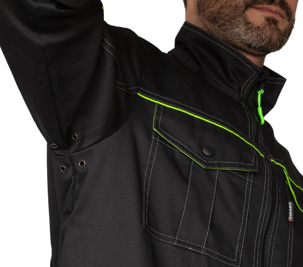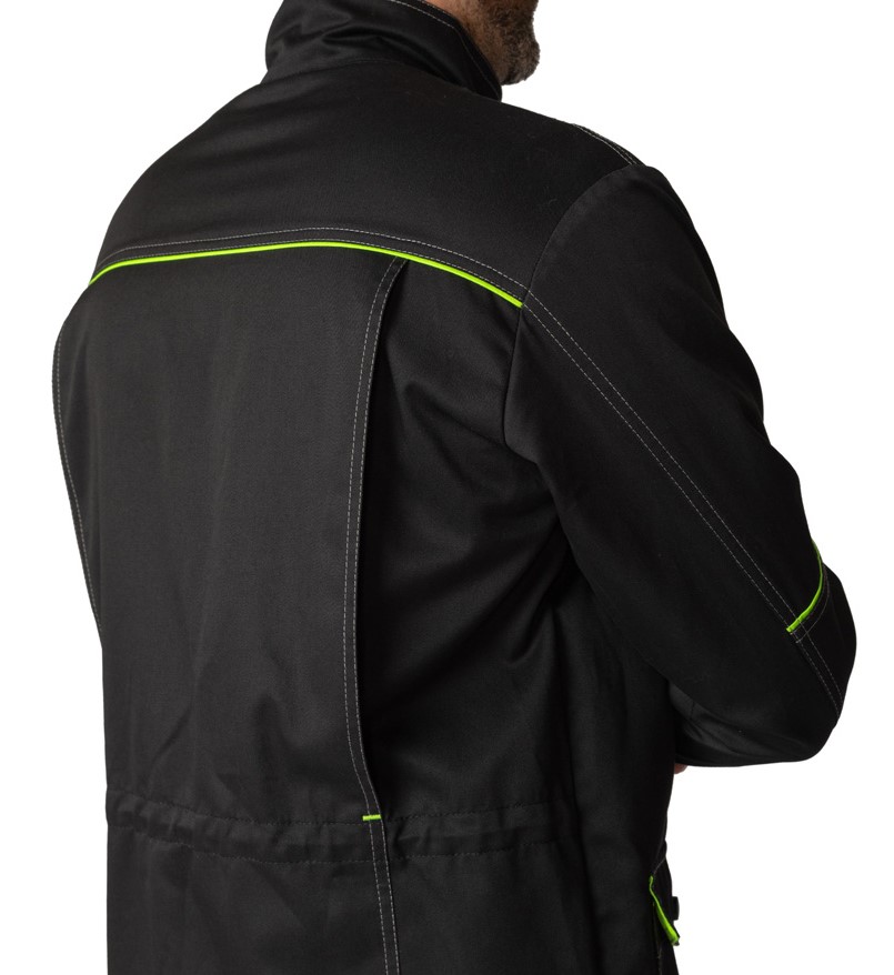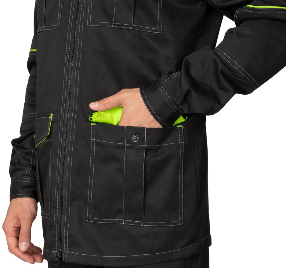 Удлинённая прямая рабочая куртка, которая подчеркнет статус руководителя и защитит от производственной грязи и пыли. Эта модель хорошо сочетается не только с брюками из одноимённой линейки, но и с брюками и полукомбинезонами из других тканей и других цветов. Её даже можно носить поверх офисной рубашки и с обычными джинсами. Вы сможете подобрать костюм на нестандартную фигуру и в соответствии со своими цветовыми предпочтениями. Мужская куртка «Эко-Босс» сшита из премиальной ткани с повышенным содержанием хлопка (60%) и позволяет телу дышать даже при активном движении. В местах агрессивного воздействия использованы накладки, которые сохраняют целостность куртки и при этом дают возможность использовать более лёгкую ткань для всего изделия. Ткань имеет водоотталкивающую пропитку и хорошо защищена не только от пыли, стружки, опилок, но и не боится капель воды, брызг различных жидкостей, повышенной влажности воздуха.