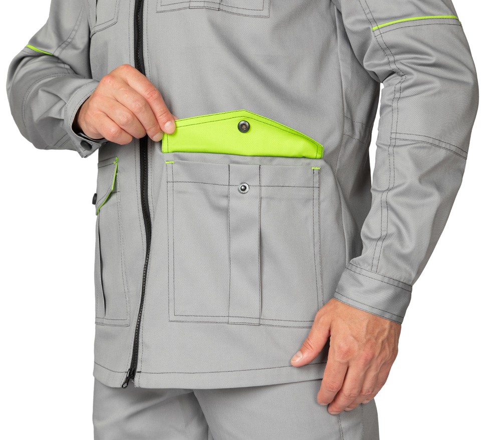 Куртка «Эко-Босс» предназначена для руководителей и ИТР, а также специалистов, занятых облицовкой наружных и внутренних поверхностей инженерных сооружений, например для таких специальностей как: инженер, мастер бригад, конструктор, инженер-конструктор, технолог, проектировщик, сметчик и др. Рабочая куртка «Эко-Босс» предназначена для тёплого времени года или отапливаемых помещений. Она хорошо защищает от порывов ветра и сквозняков. Удлинённые полы не позволят холодному воздуху проникать внутрь, а кулиска на спине обеспечивает более плотное прилегание. Анатомический крой обеспечивает свободу движений во время работы. За прочность модели отвечают двойные швы. Куртка выдерживает высокую нагрузку на разрыв. Карманы, рукава, воротник и другие детали сохранят форму даже при очень высоком натяжении.