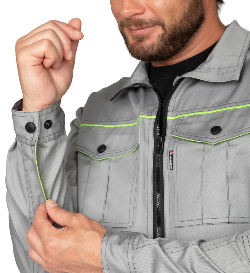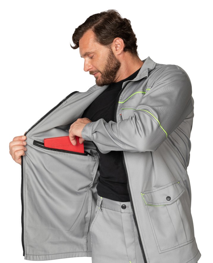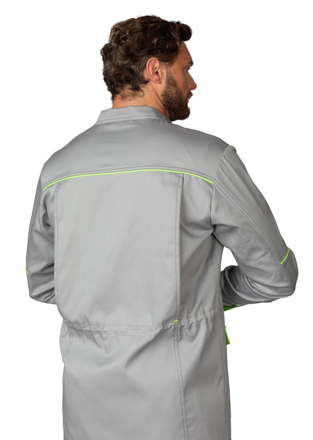 Удлинённая прямая рабочая куртка, которая подчеркнет статус руководителя и защитит от производственной грязи и пыли. Эта модель хорошо сочетается не только с брюками из одноимённой линейки, но и с брюками и полукомбинезонами из других тканей и других цветов. Её даже можно носить поверх офисной рубашки и с обычными джинсами. Вы сможете подобрать костюм на нестандартную фигуру и в соответствии со своими цветовыми предпочтениями. Мужская куртка «Эко-Босс» сшита из премиальной ткани с повышенным содержанием хлопка (60%) и позволяет телу дышать даже при активном движении. В местах агрессивного воздействия использованы накладки, которые сохраняют целостность куртки и при этом дают возможность использовать более лёгкую ткань для всего изделия. Ткань имеет водоотталкивающую пропитку и хорошо защищена не только от пыли, стружки, опилок, но и не боится капель воды, брызг различных жидкостей, повышенной влажности воздуха.
