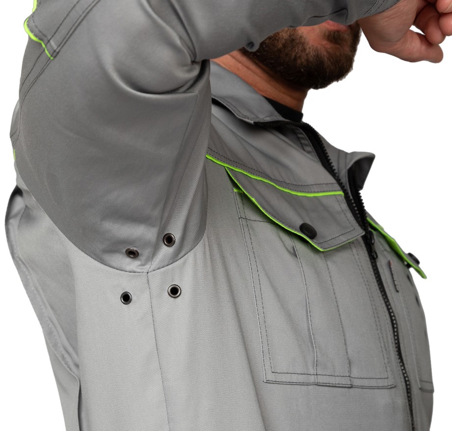 Усилительные элементы: эргономичные налокотники с усилительными накладками; дополнительная прочность соединений за счет закрепок и двойных отделочных строчек.