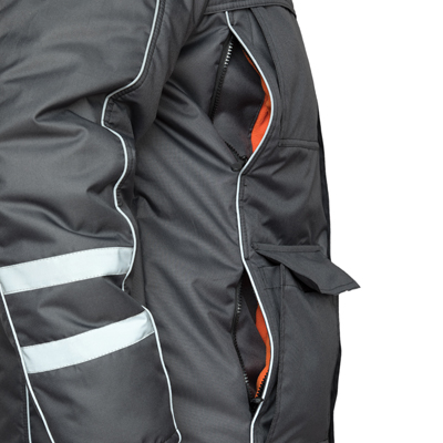 Карманы: нагрудные и нижние боковые карманы в рельефных швах с застёжкой на молнию утеплены флисом, над ними — накладные утеплённые синтепоном карманы с утеплёнными клапанами, которые застёгиваются на контактную ленту. Итого — восемь карманов на полочках куртки снаружи. На центральной части левого рукава настрочен карман с застёжкой на молнию с ограничителями концов молнии. Внутренний нагрудный карман с молнией. На внутреннем кармане расположена именная этикетка ФИО.