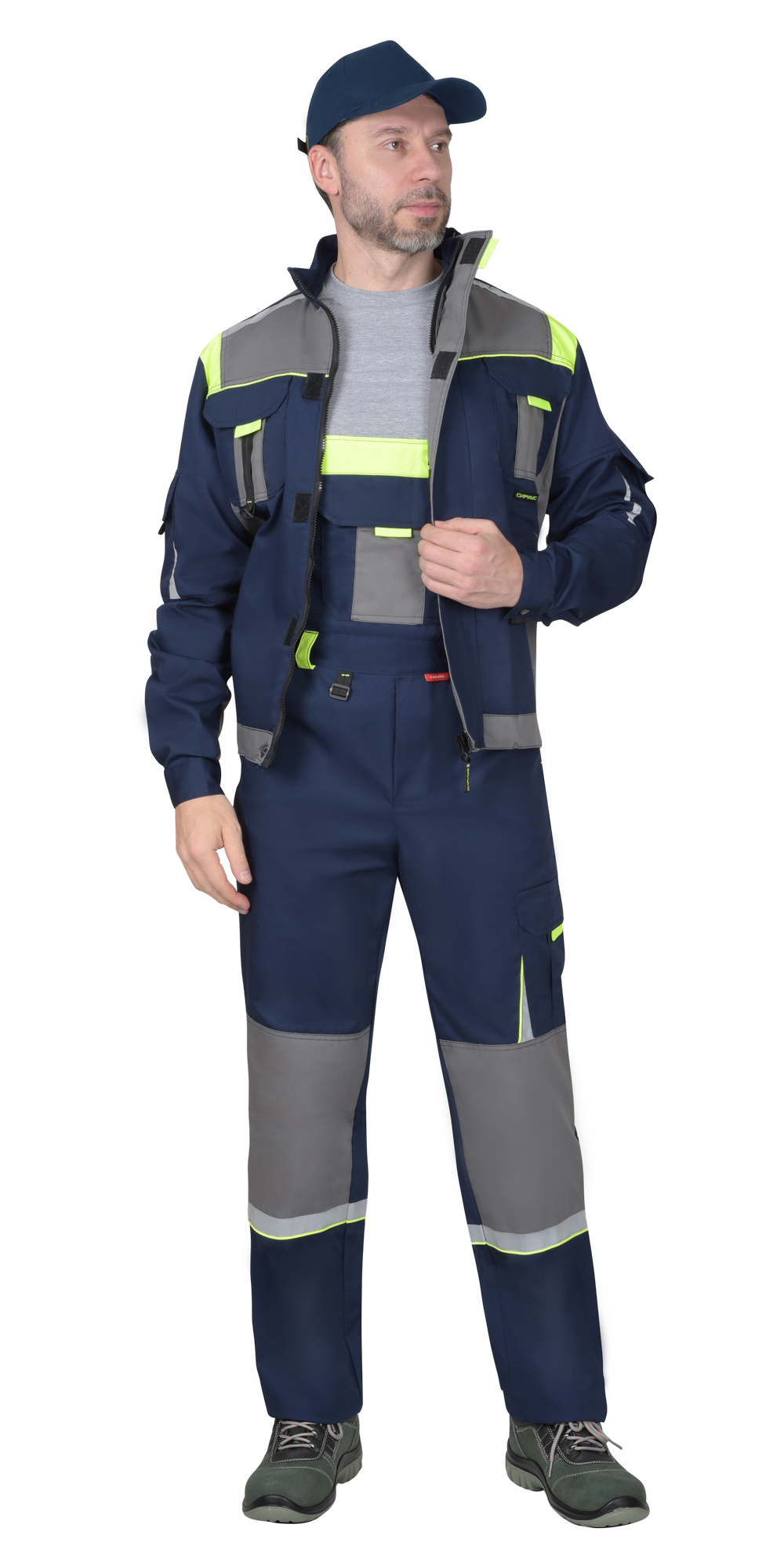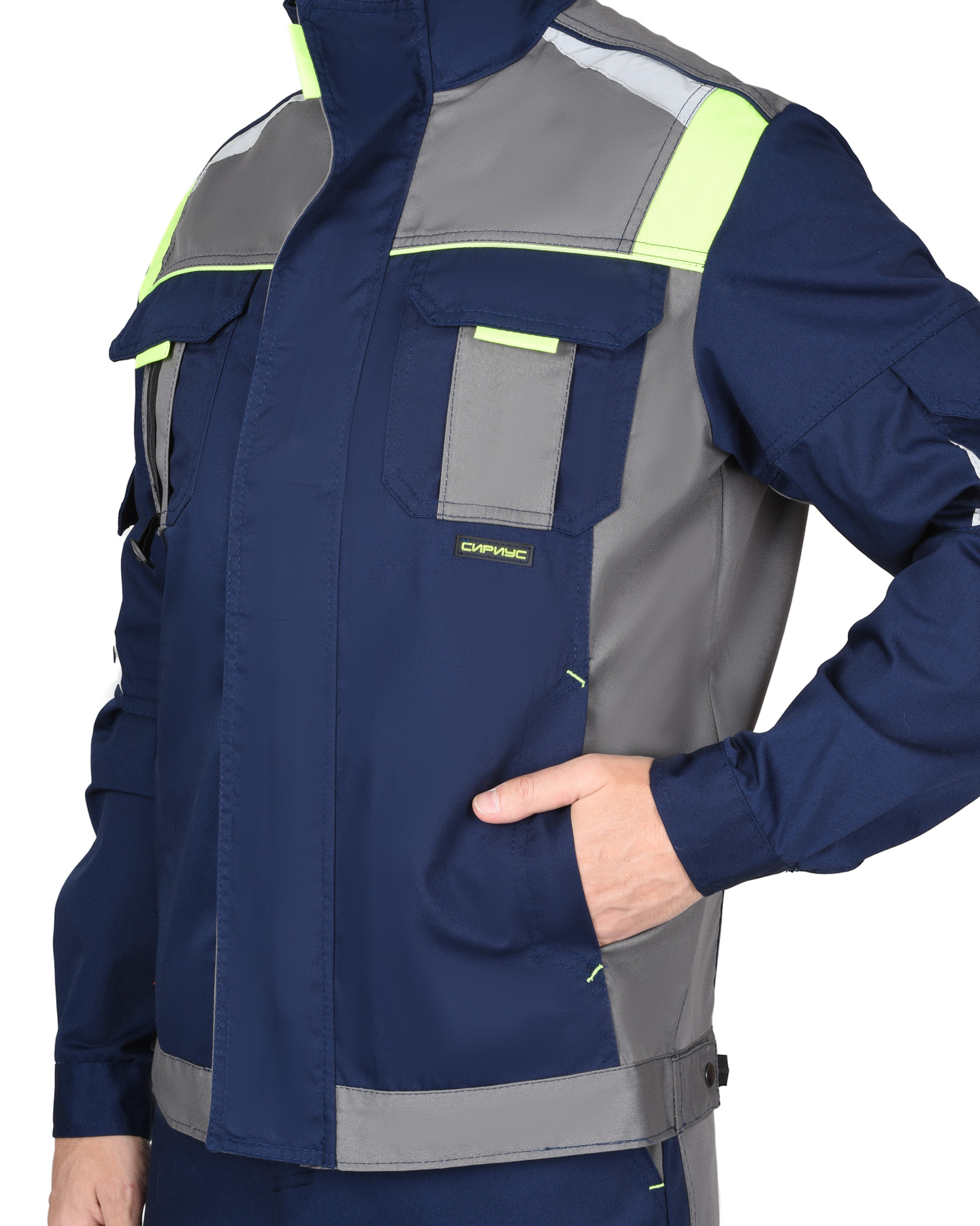 Куртка "СТАН" синяя со средне-серым и лимонной отделкой