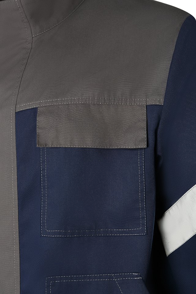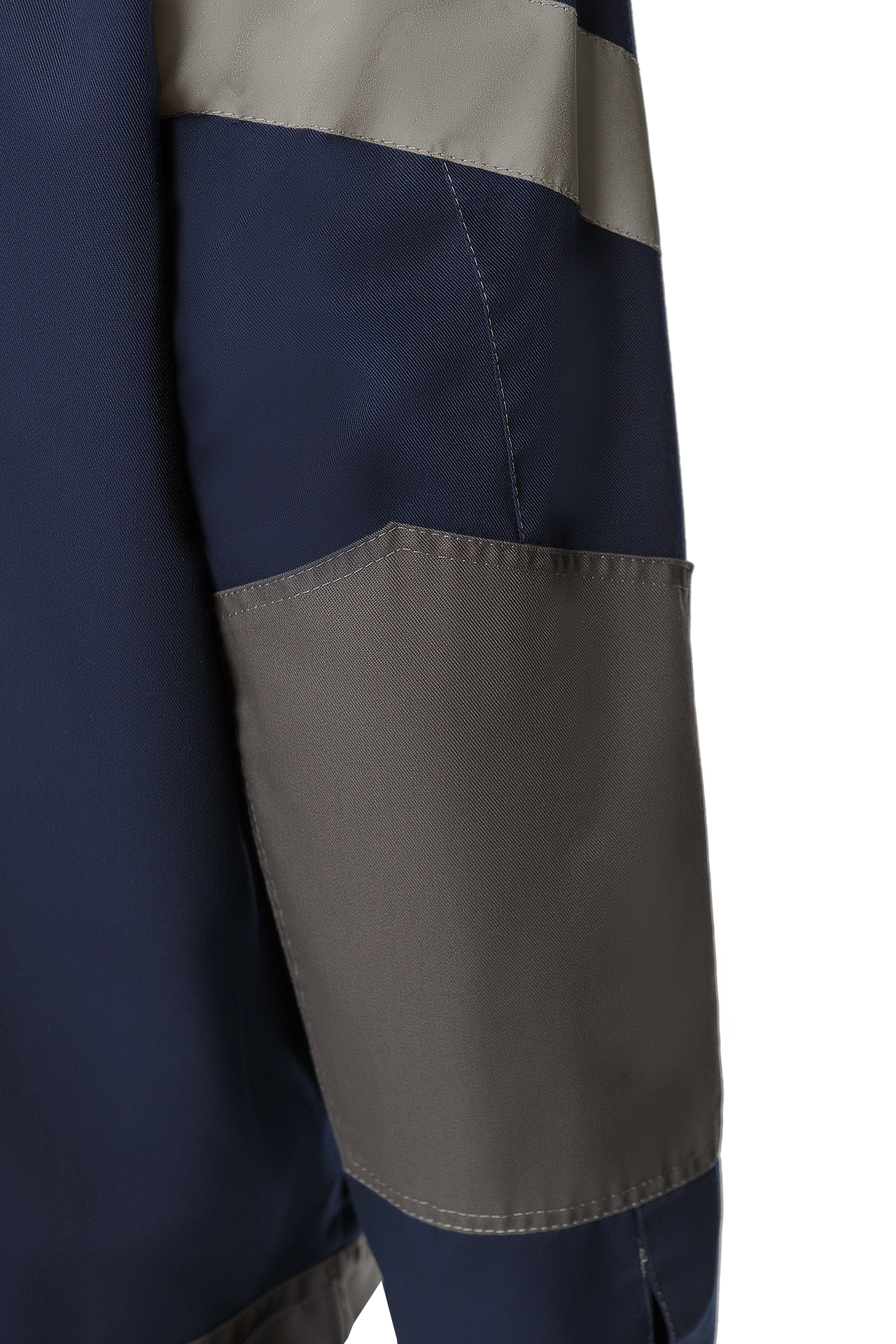 На рукавах имеются световозвращающие полосы, которые обеспечивают дополнительную видимость работника в темное время суток.