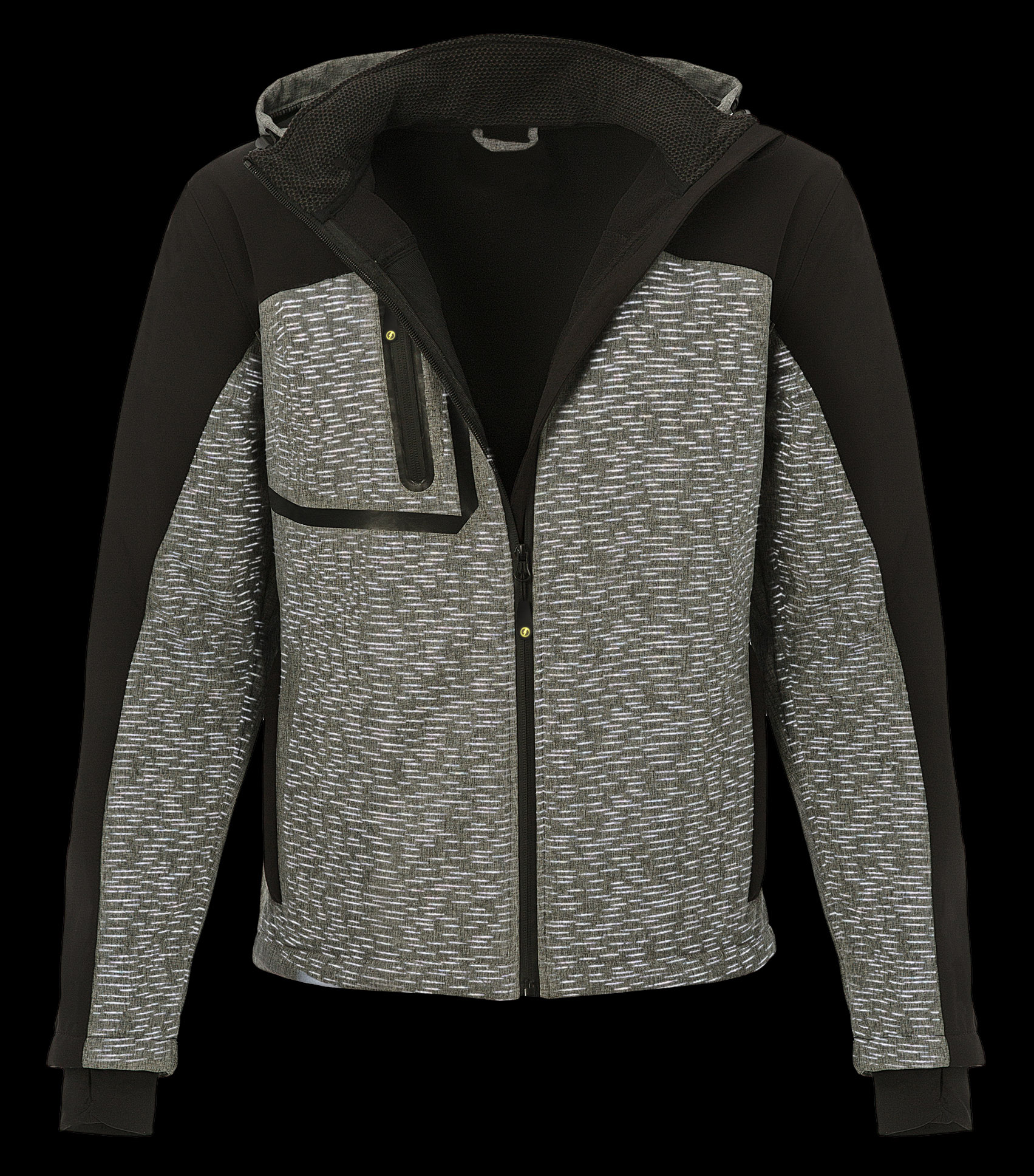 Мембранная водонепроницаемая и ветрозащитная куртка со светоотражающим эффектом. Материал рефлектив отражает свет даже от минимального источника света (фонарик, свет от фар автомобиля и прочее), что повышает безопасность в вечернее время суток и в условиях плохой видимости