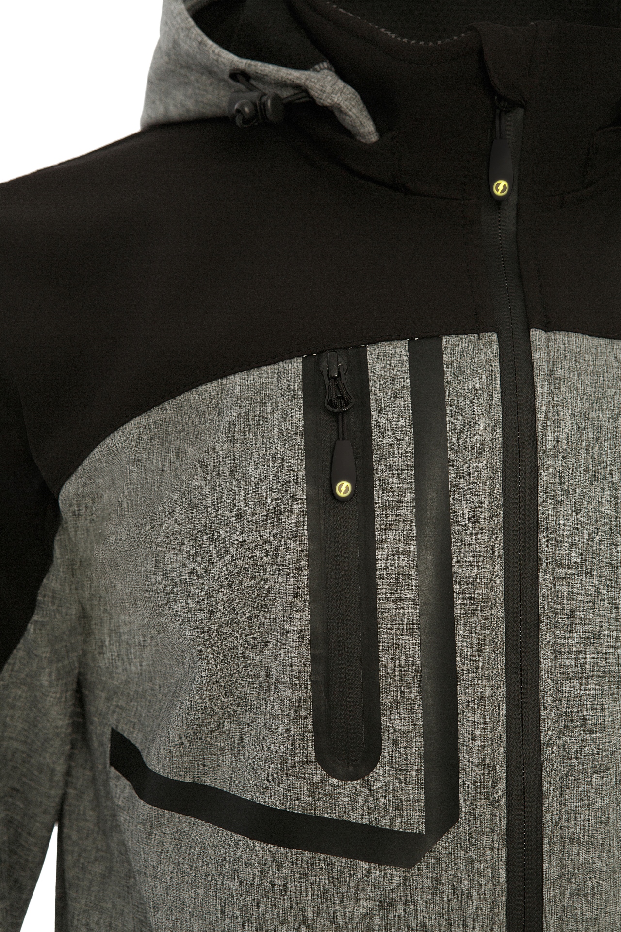 Основная ткань: мембранная со светоотражающим принтом (показатели: 5000 мм. вод.ст./500 г/м² за 24 часа). Состав основной ткани: внешний слой: 100% полиэстер; средний слой: 100% термопластичный полиуретан; внутренний слой: 100% полиэстер (флис)