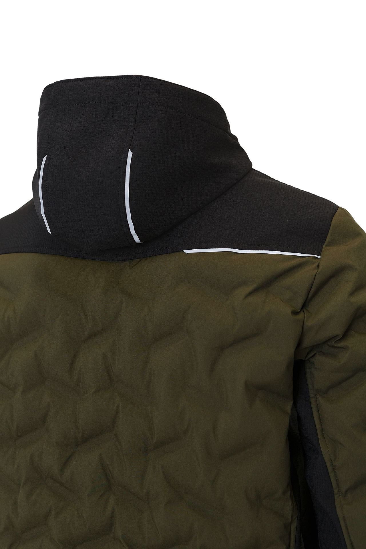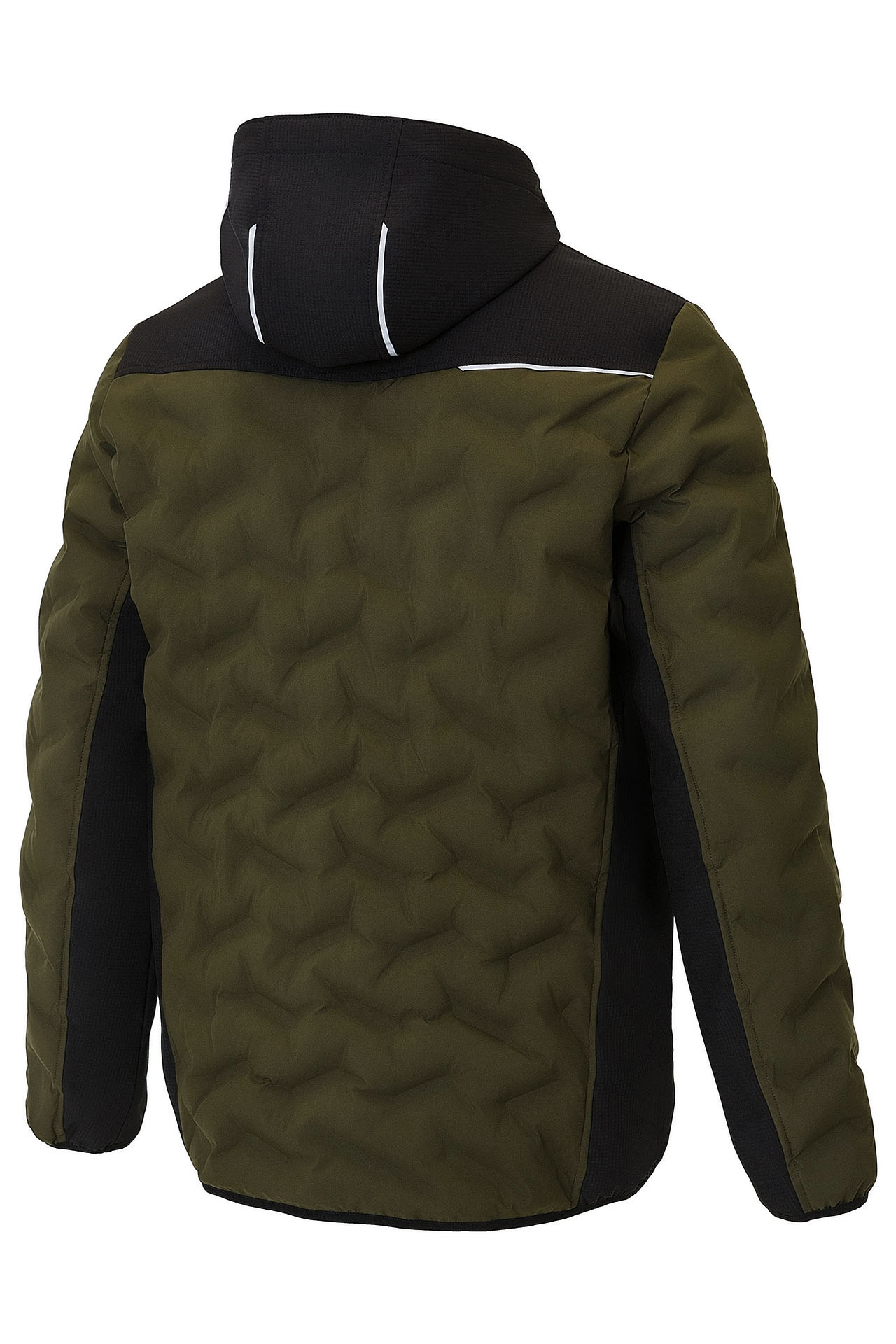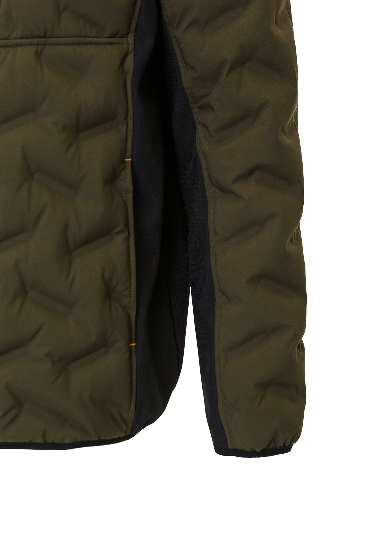 Куртка выполнена с использованием термостёжки, благодаря чему не происходит миграции волокон утеплителя