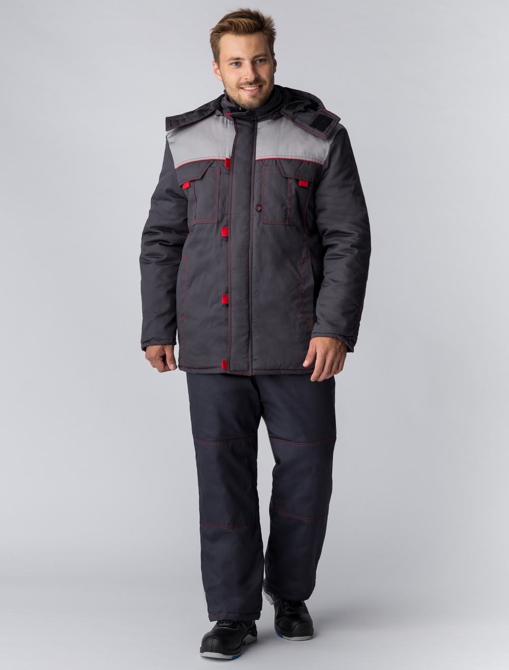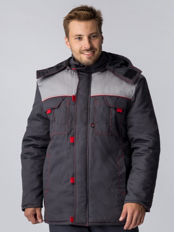 Куртка зимняя Фаворит (тк.Смесовая,240), т.серый/св.серый/красный