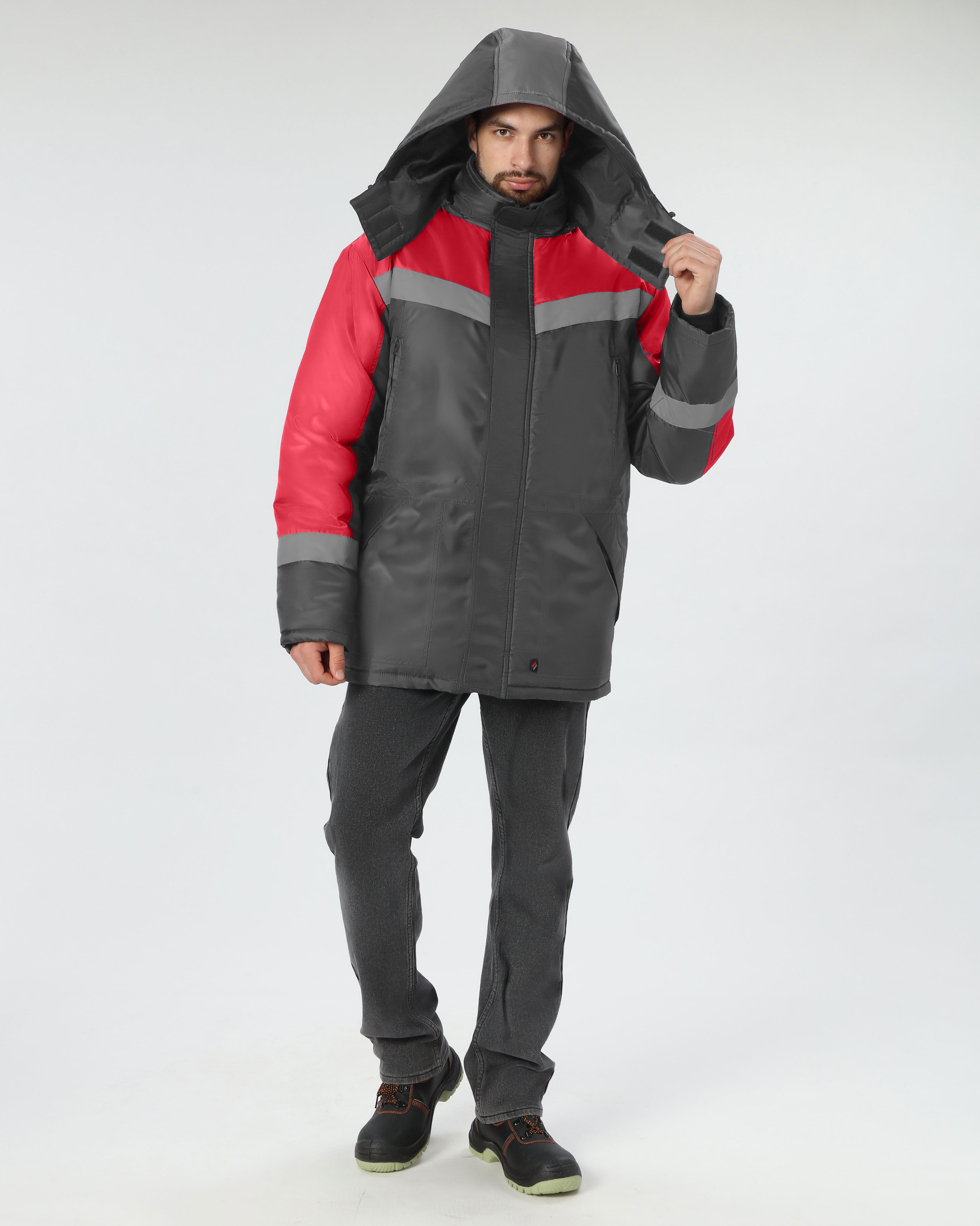 Куртка зимняя "Лигор" СОП (тк.OxLine,90), т.серый/красный