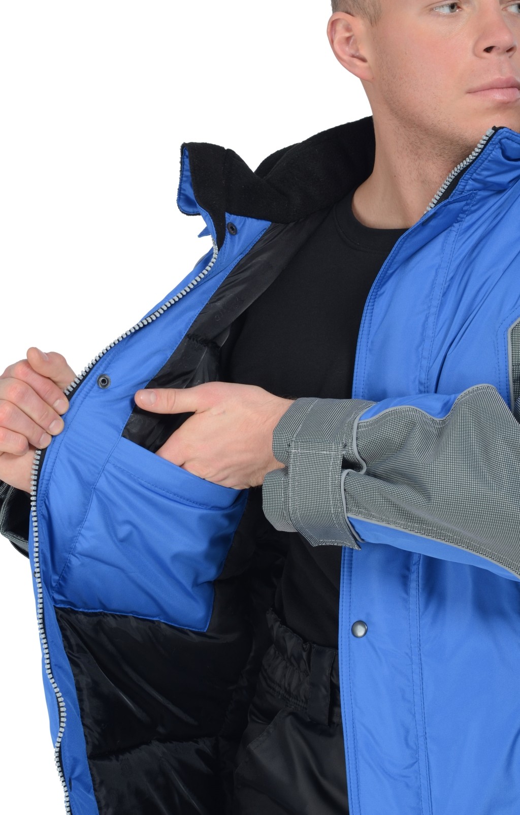 Утепленная куртка «Ультра» василькового цвета предназначена для экипировки работников различных специальностей в холодное время года.