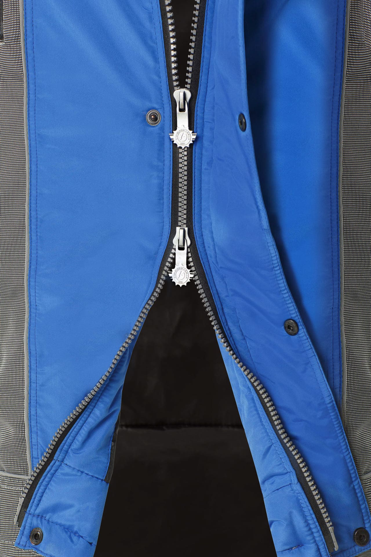 - Застежкой изделия служит молния с ветрозащитной планкой. Застежка планки на пять кнопок.