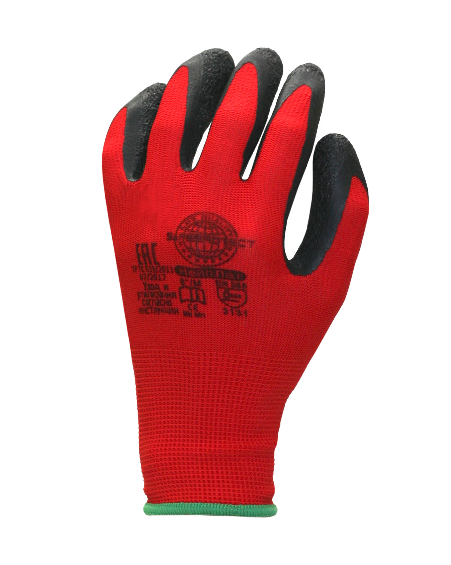 Перчатки из 100% нейлона, 13 кл. вязки, цвет красный. Рифленое латексное покрытие черного цвета. Хорошая защита от истирания и разрыва. Повышенная стойкость покрытия к кислотам и щелочам. Отличная воздухопроницаемость, широкий диапазон применения. Цветной оверлок.