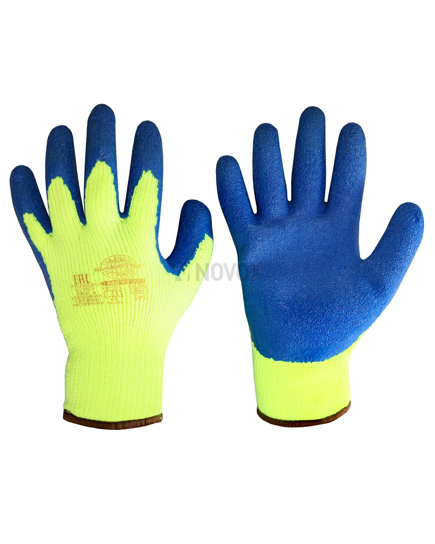 Перчатки из акрила 7-го класса вязки. Ворсовая подложка. Оверлок. Латексное покрытие ладони и пальцев. Губчатая поверхность. Подходят для механических работ при пониженной температуре.