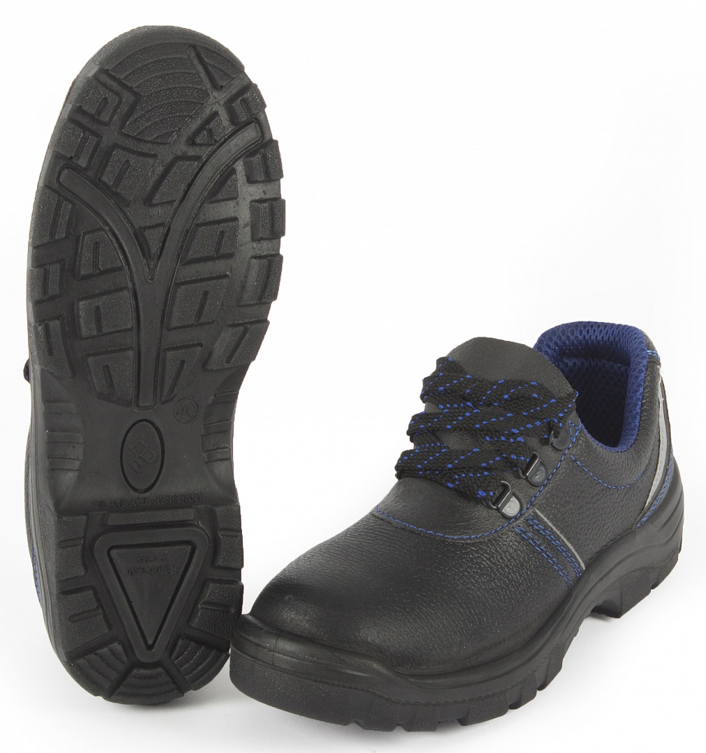 Кожаные полуботинки Prosafe серии basic c фигурной отрезной задинкой, мягким кантом и глухим клапаном предназначены для защиты ног от общих производственных загрязнений в отапливаемых помещениях и на открытом водухе в летний период. Текстильная сетчатая подкладка и стелька создают комфортные условия носки в течении рабочей смены. Шнуровка, проходящая через металлические петли, обеспечивает комфортную адаптивную посадку при длительном ношении. Светоотражающие элементы повышают видимость работников в темное время суток, а также на неосвещенной территории. Однослойная маслобензостойкая полиуретановая подошва литьевого метода крепления имеет вставку в пяточной части подошвы, обладающую амортизационными свойствами и способную гасить ударные нагрузки при ходьбе. Глубина протектора ходового слоя обеспечивает хорошую сцепляемость с поверхностями и препятствует скольжению за счет рельефа протектора. Термопластичный подносок обеспечивает защиту пальцев стопы.