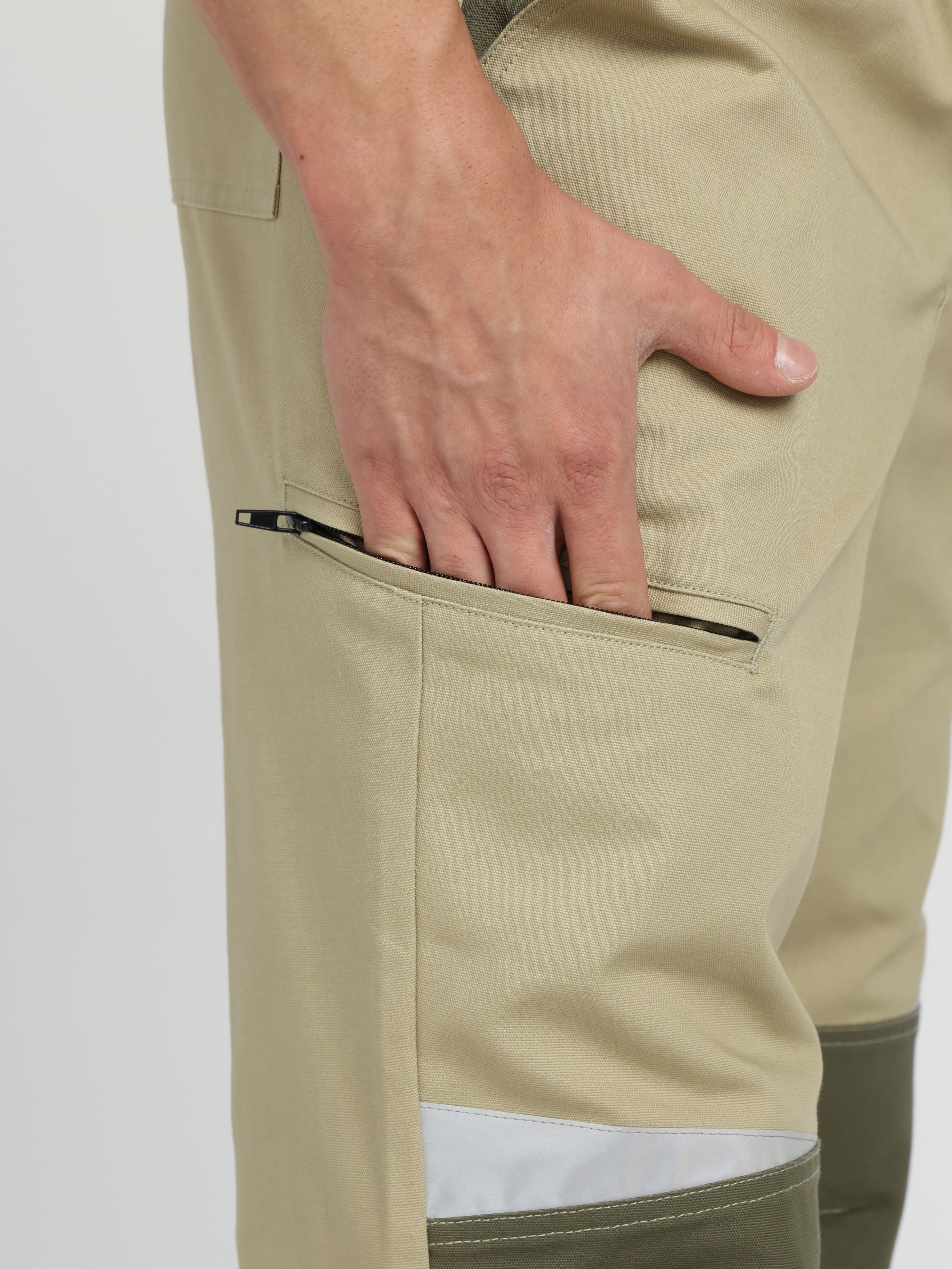 в районе бедра слева накладной карман с объемом, закрывающиеся клапаном с двумя участками ленты контакт, справа карман, застегивающийся на тесьму-«молния»