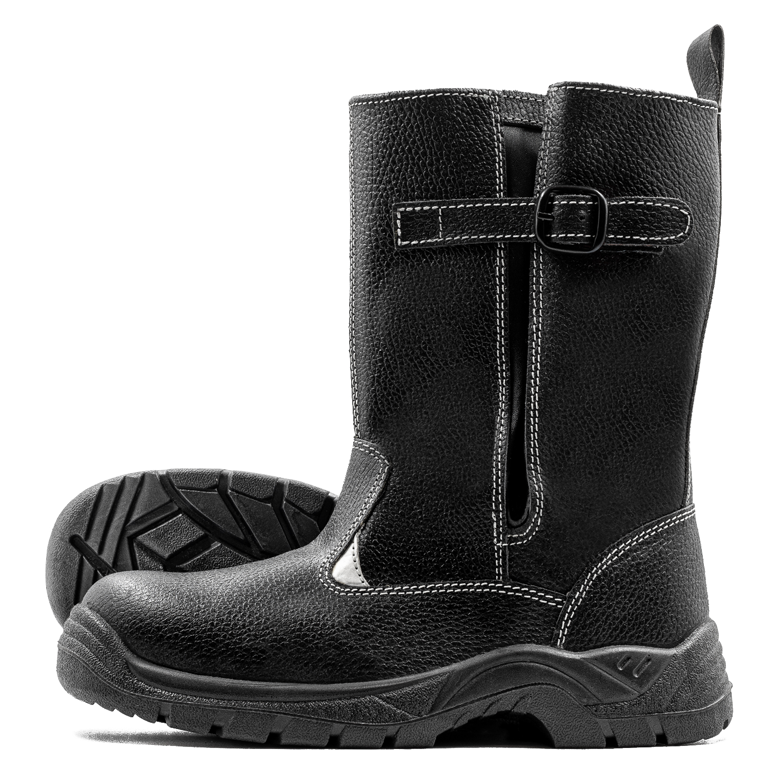 Зимние защитные сапоги на однослойной ПУ подошве изготовлены из натуральной юфтевой кожи устойчивой к воздействию агрессивных внешних факторов. Внутренняя отделка из искусственного меха для комфортного использования в зимний период. Подошва изготовлена литьевым методом, что делает обувь водонепроницаемой. Она устойчива к воздействию кислотно-щелочных веществ (до 20%), масло-бензольных соединений и нефтепродуктов. Рабочая температура эксплуатации сапог от -35°С до +85°С. Голенище регулируется по ширине. Носок защищен металлическим подноском с ударной нагрузкой до 200 Дж. Амортизатор в пяточной части сапога обеспечивает дополнительный комфорт для ног