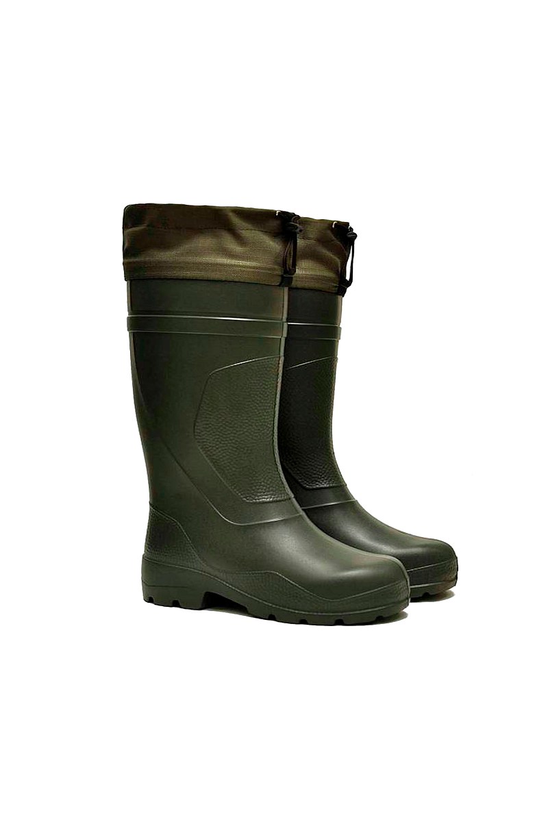 - Материал: сапоги выполнены литьевым методом целиком из термостойкого, эластичного и прочного полимера ЭВА, надставка из водоотталкивающей ткани Оксфорд c полиуретановой пропиткой.