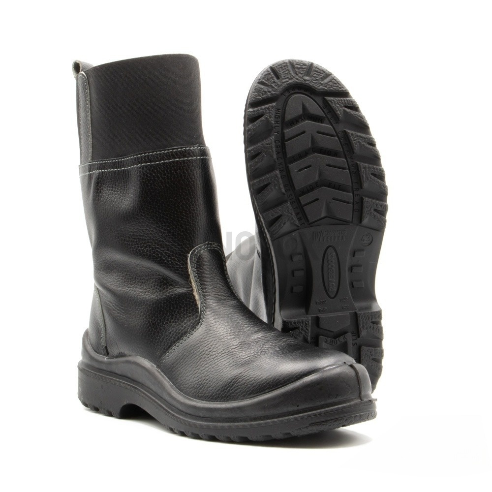 • кожаное голенище по верху стянуто широкой эластичной манжетой, которая предотвращает попадания искр и брызг расплавленного металла, окалины внутрь обуви