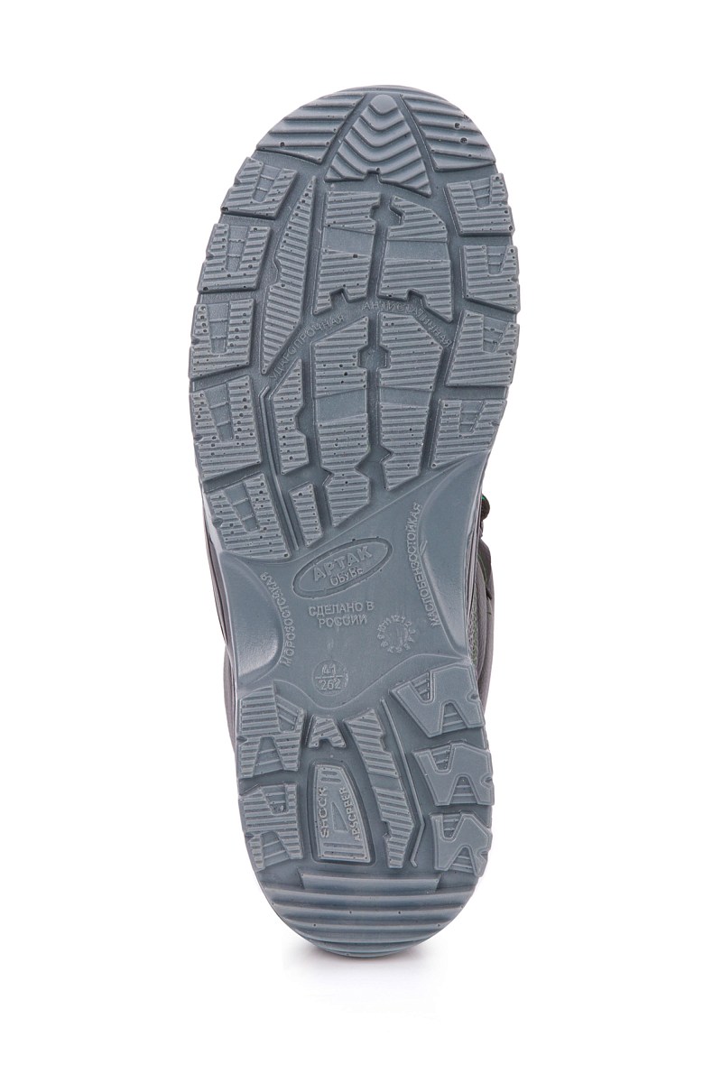 - Подошва: ПУ-ПУ, двуцветная из полиуретана двойной плотности, обладает амортизирующими свойствами, эластичностью, повышенной прочностью и обеспечивает защиту от агрессивных сред (МБС), глубина протектора составляет 4,5-5,0 мм.