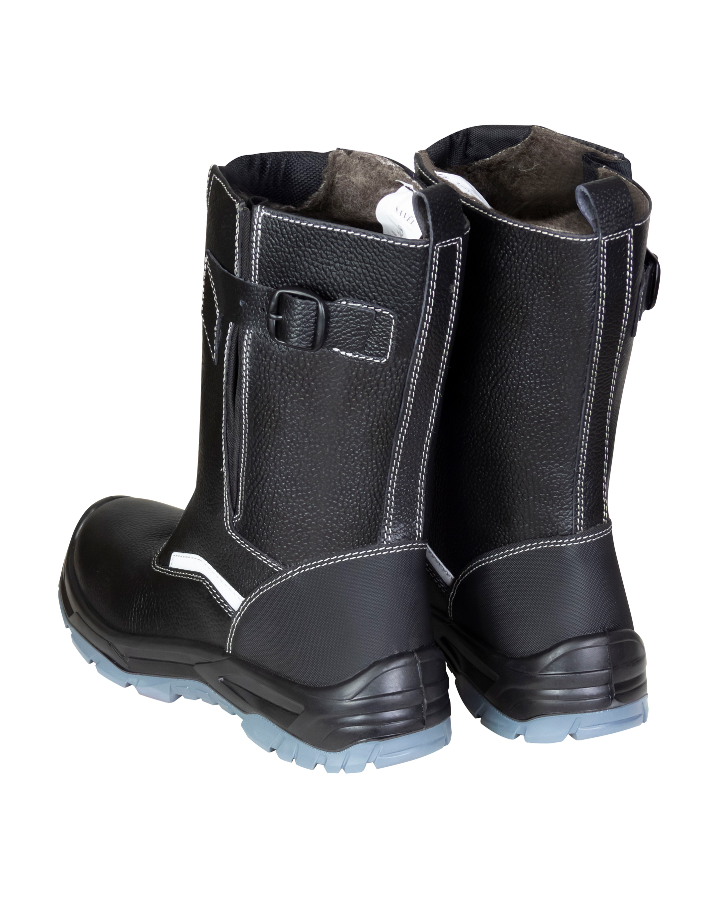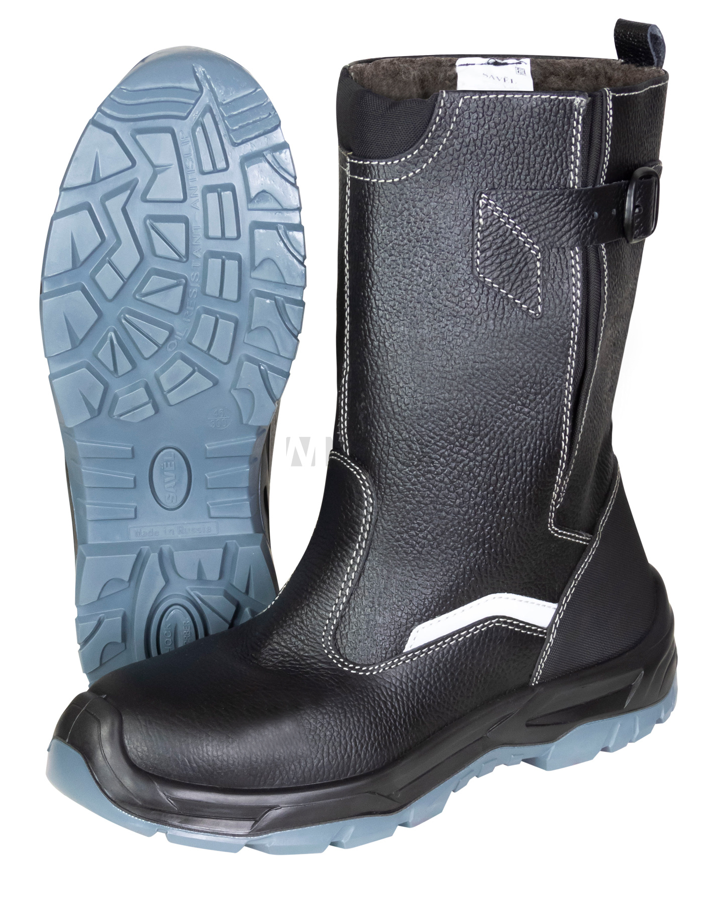 Голенище в сапогах "SAVEL-ДЖЕТ" из кожи, с помощью ремешка возможна регулировка по ширине, подкладка и вкладная стелька утеплённые, из шерстина. Имеются световозвращающие элементы для привлечения внимания и исключения несчастных случаев на производстве в темное время суток. В носочной части стопы конструкция сапог оснащена металлическими подносками, предохраняющими ноги от удара и имеющими ударную прочность не менее 200 Дж, что регламентировано российскими и европейскими стандартами.