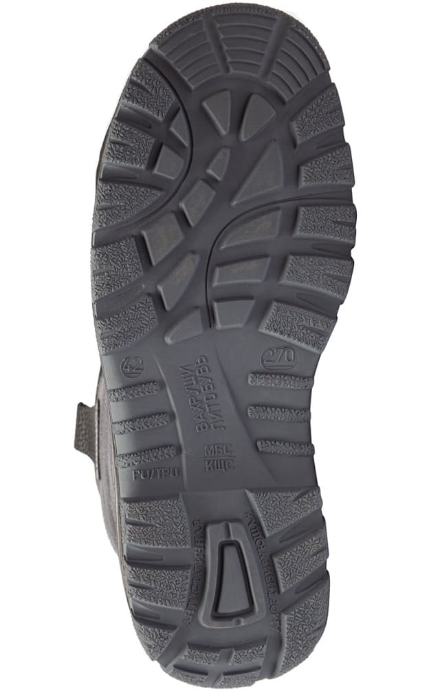 - Подошва двухкомпонентная: полиуретан / термополиуретан обеспечивают повышенную износостойкость и хорошую амортизацию.