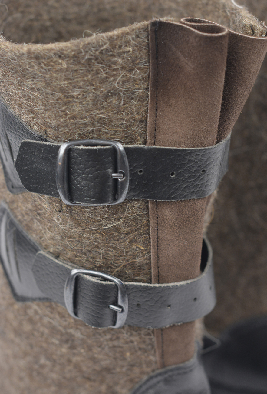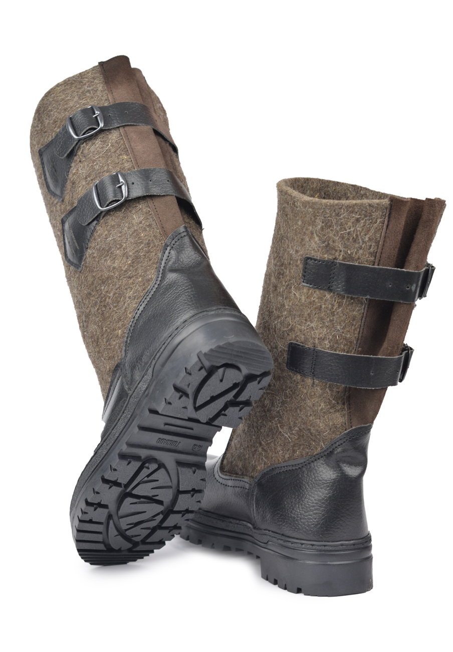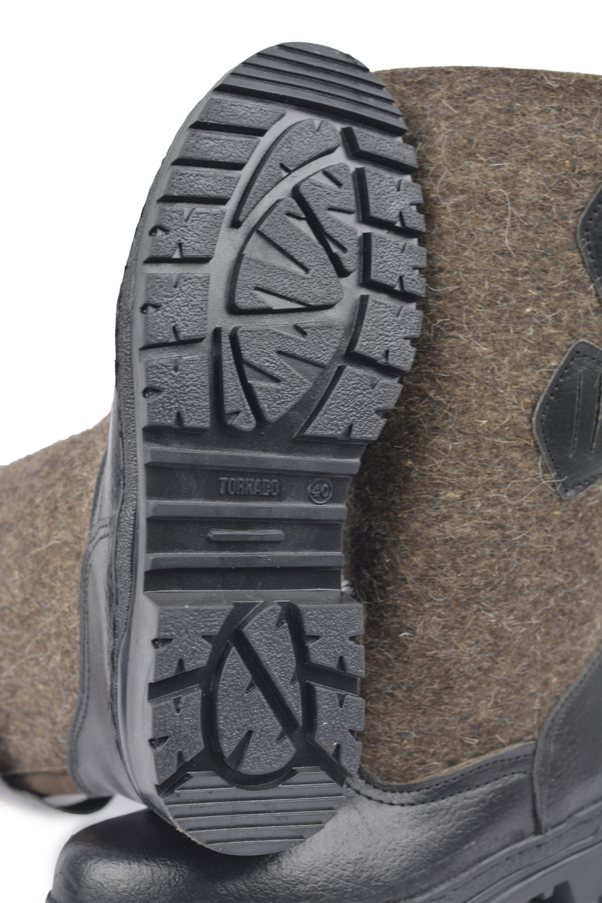 Союзка и задник обшиты натуральной кожей, что хорошо защищает ноги в слякотную погоду. Предназначены для использования в условиях пониженных температур. Сапоги изготовлены из войлока (грубая натуральная овечья шерсть) с маслобензостойкой подошвой(ТЭП) клеепрошивного метода крепления. Отлично защищают ноги от пониженных температур, нефтепродуктов и общих производственных загрязнений. Голенище разрезное, с задней стороны располагается клин с двумя кожаными регулируемыми застежками, которые позволяют заправлять низ брюк внутрь сапог и затягивать по ноге. Незаменимы в использовании во всех климатических поясах, сохранили в себе все лучшие свойства натуральных валенок, так популярных у нас в стране. А в условиях дефицита и дороговизны последних, являются хорошей альтернативой валенкам. Войлочные сапоги могут быть использованы в различных отраслях промышленности, строительстве, сельском хозяйстве, складском или коммунальном хозяйстве. Высота: 31 см.