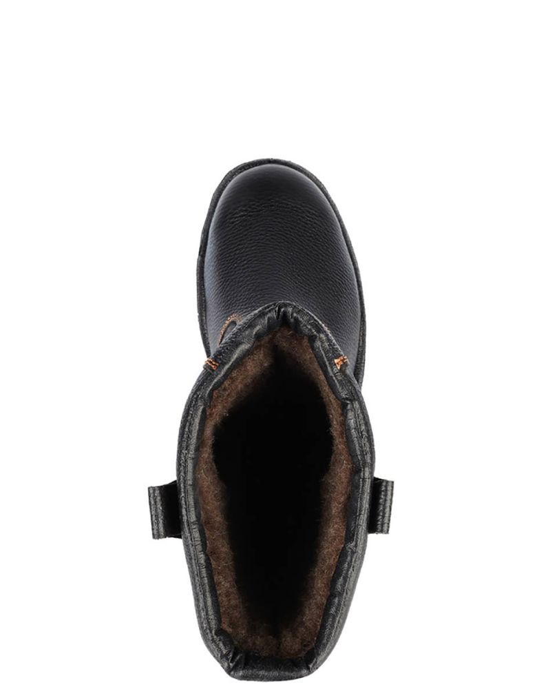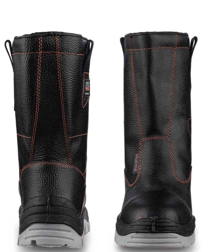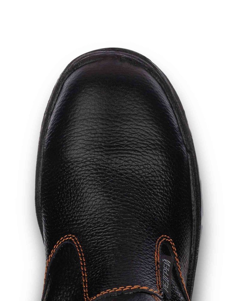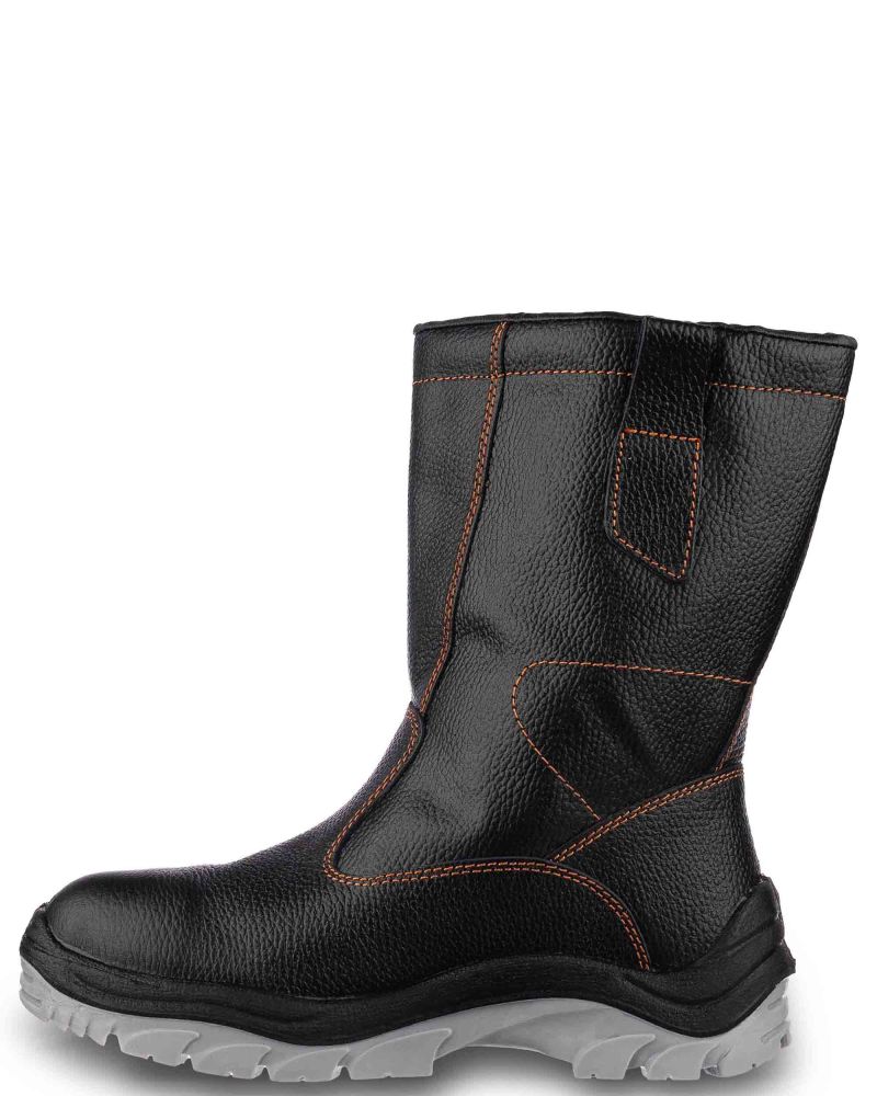 Верх обуви выполнен из натуральной кожи толщиной 1,8–2,0 мм, специально адаптированной для условий рабочей среды.