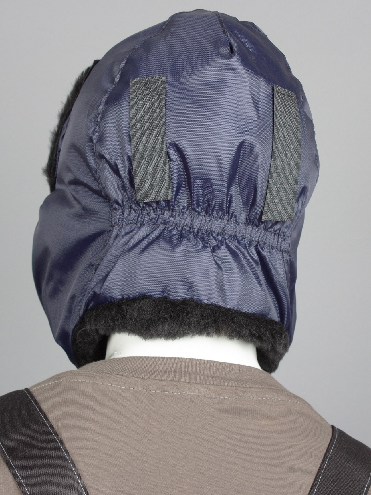 - предусмотрена возможность носки шапки под защитную каску и для этого есть фиксаторы креплений. Удлиненные ушки соединяются контактной лентой и защищают от ветра, подкладка из флиса обеспечивает термозащиту
