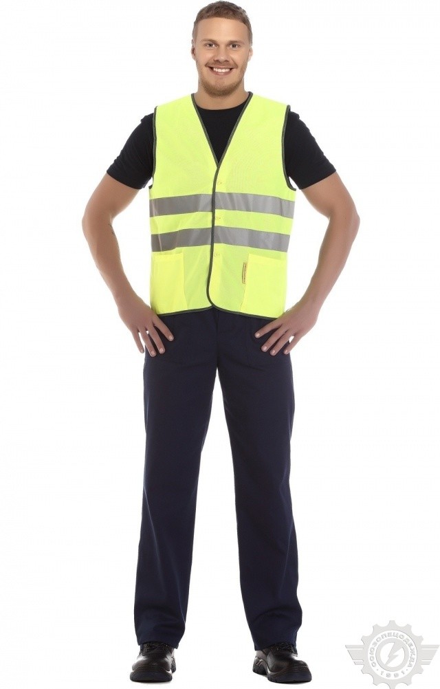Жилет обеспечивает видимость и безопасность пользователя в условиях недостаточного освещения.