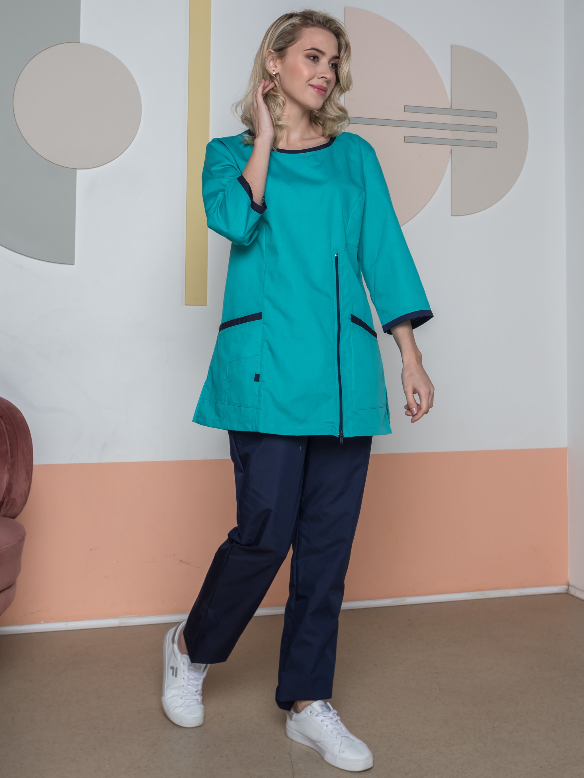 Женский костюм Вояж (ткань ТиСи), светло бирюзовый/темно синий