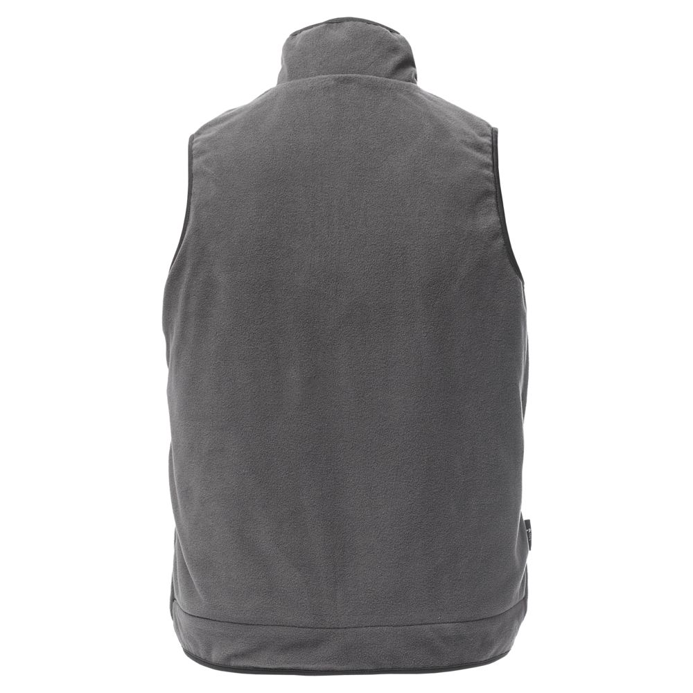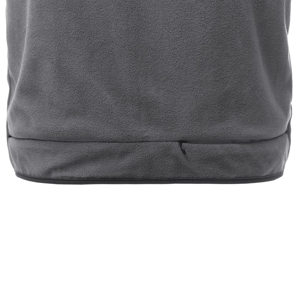 Сверху нейлон с водостойкой пропиткой, внутри — флис. А можно и наоборот. Жилет ведь двусторонний. Для удобства нанесения логотипа можно частично отстегнуть подкладку.