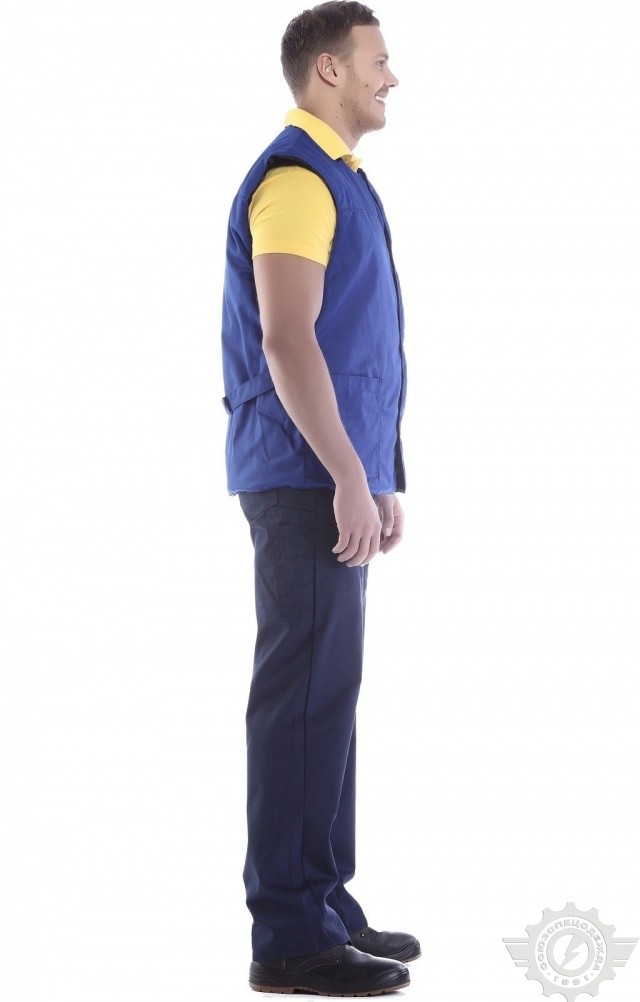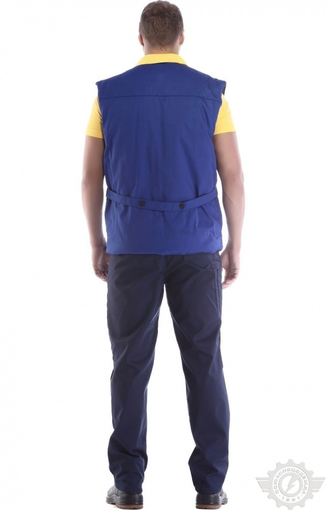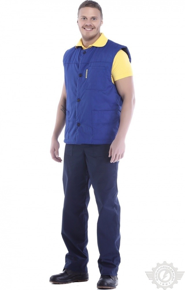 Жилет зимний “Эксперт” василькового цвета используется в качестве рабочей одежды в условиях пониженных температур.