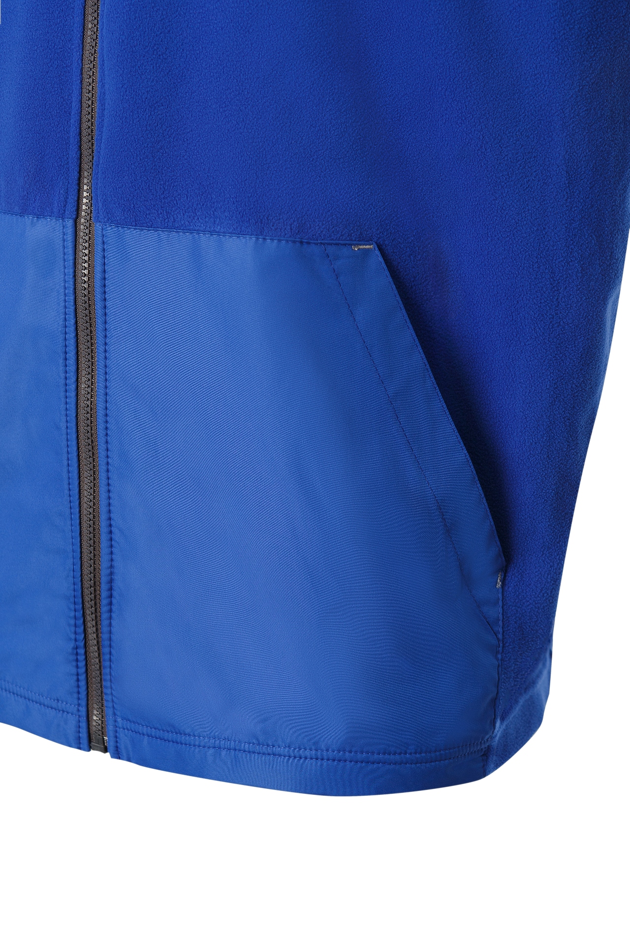 Жилет комбинированный с воротником-стойкой и удобными боковыми карманами выполнен из 2-х видов ткани: мягкого флиса и прочного курточного материала. Благодаря свойствам ткани, жилет практически не мнётся, быстро сохнет и надёжно защищает от холода и ветра.