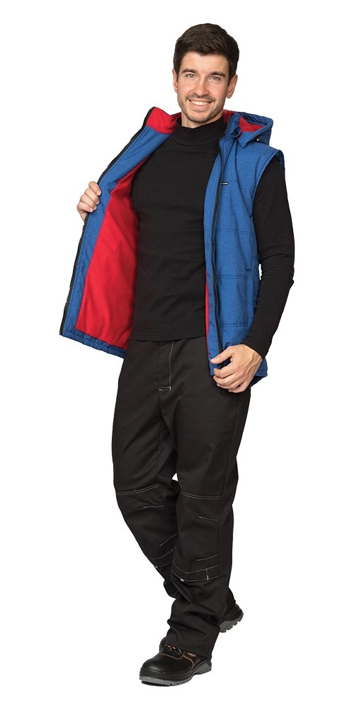 Жилет мужской утеплённый "Амур" васильковый/красный