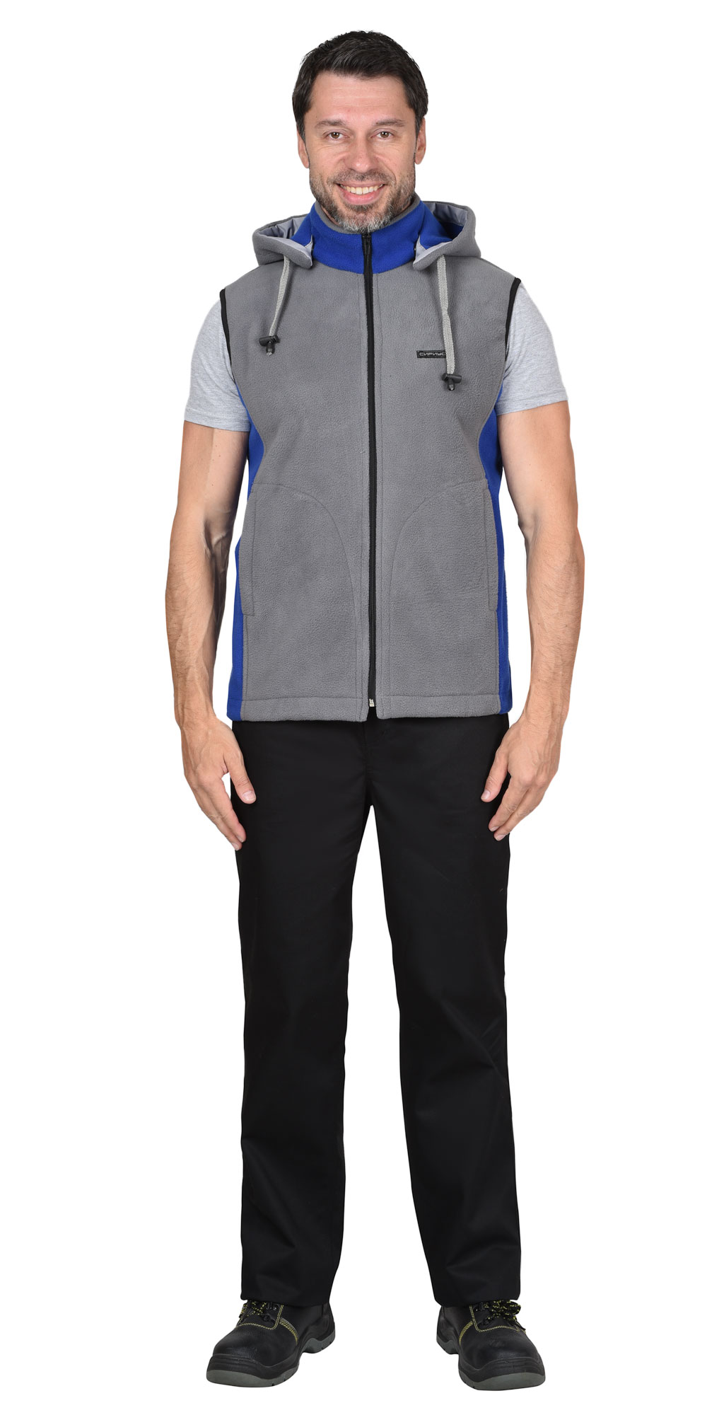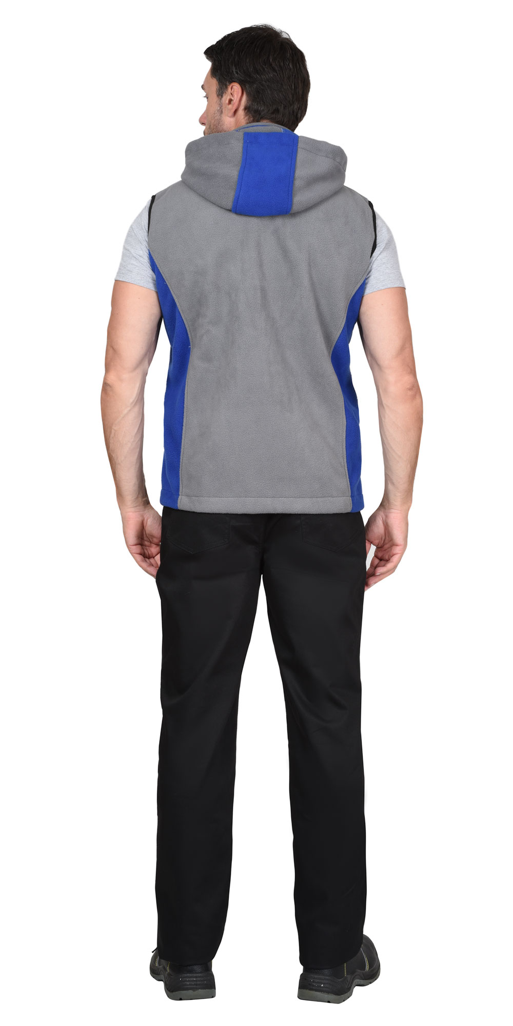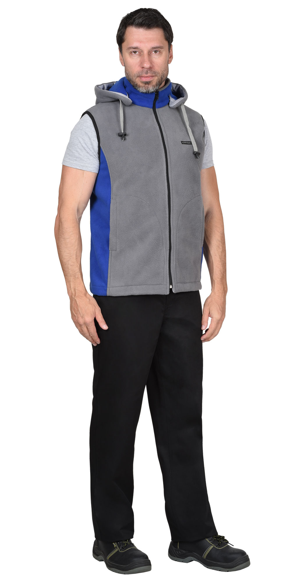 Жилет ТЕХНО (флис дублированный) серый с васильковым