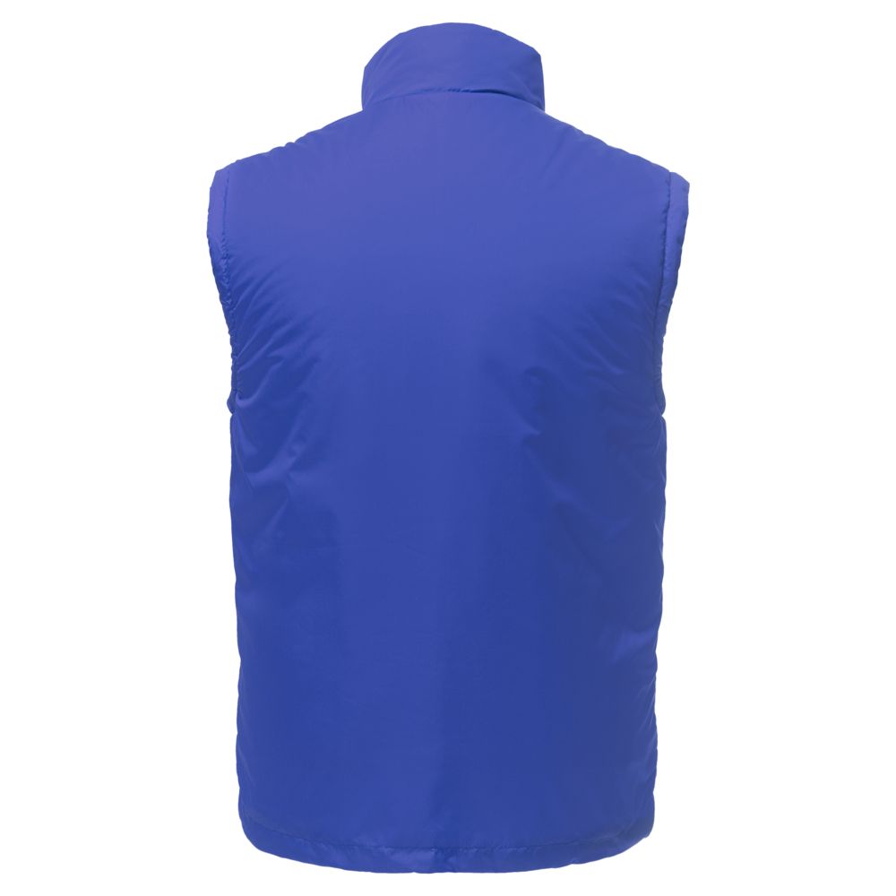 Воротник-стойка, скругленный низ, два наружных кармана на молнии и один внутренний на липучке. Застежка-молния в тон жилета. Для удобства нанесения логотипа можно частично отстегнуть подкладку.